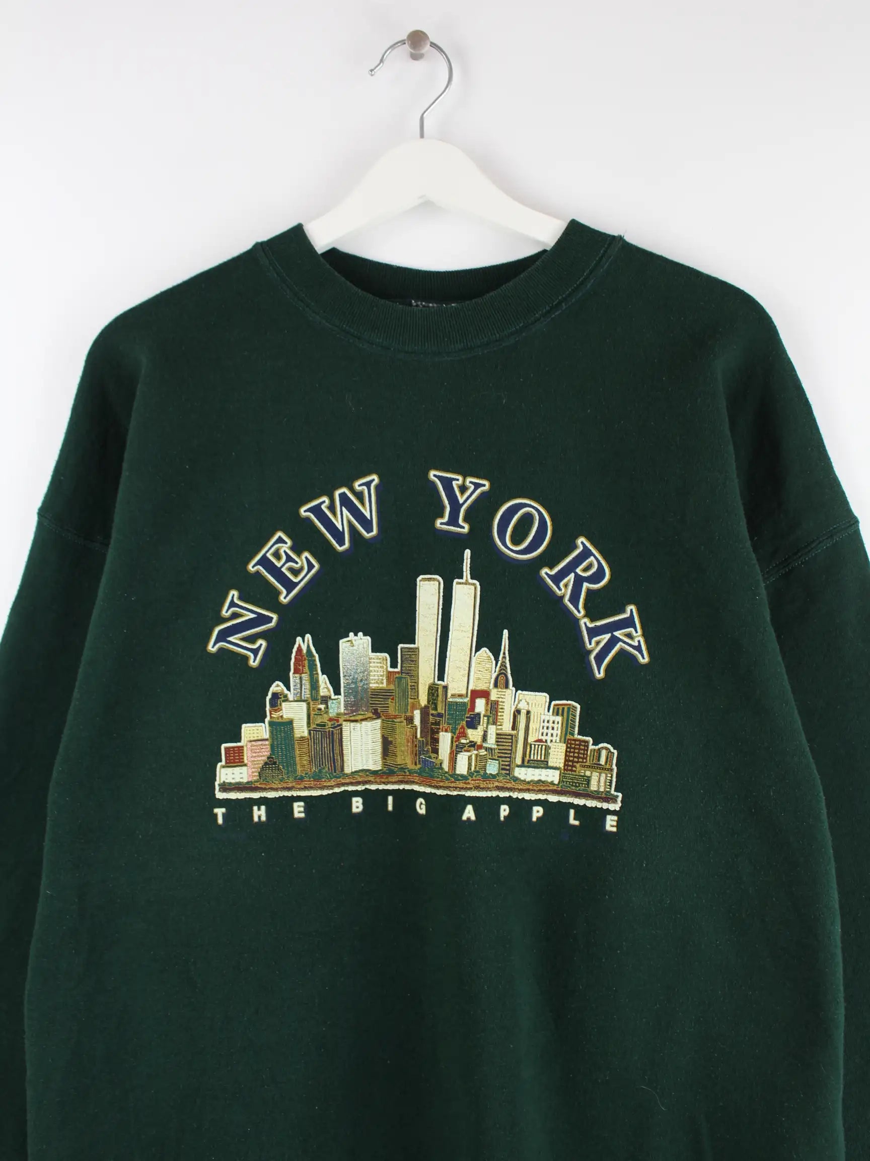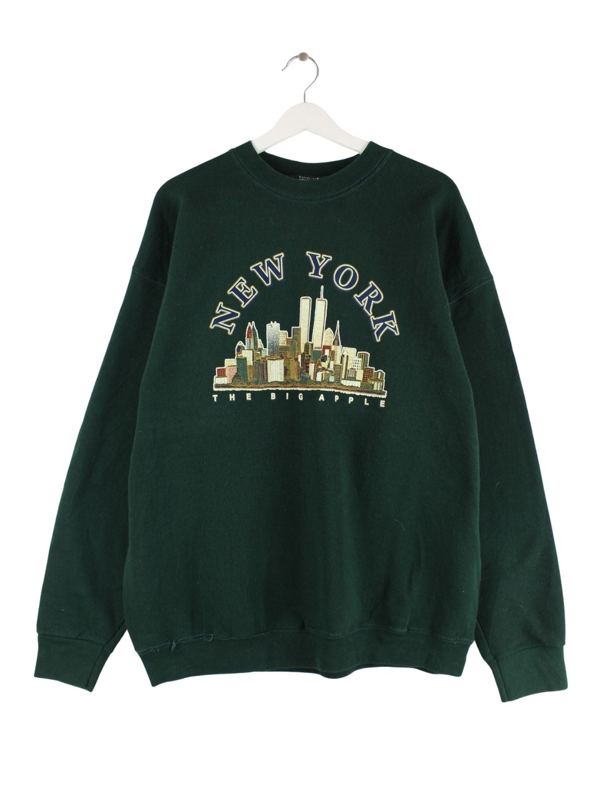 Fruit of the Loom 90s Vintage New York Print Sweater Grün XL