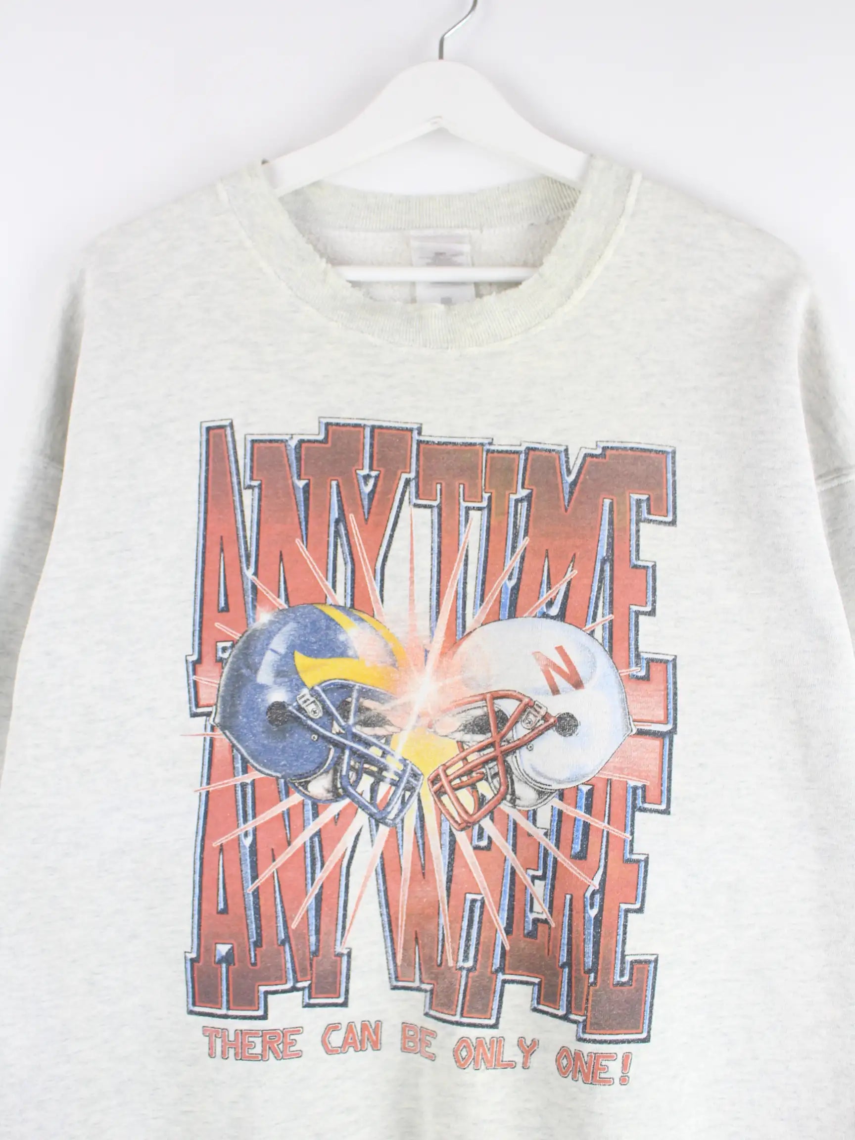 Sweater der Marke Fruit of the Loom in Größe XL aus den 90'ern. Er ist aus einer Baumwollmischung gemacht und in Grau zu bekommen. Mit seltenem NFL Print.