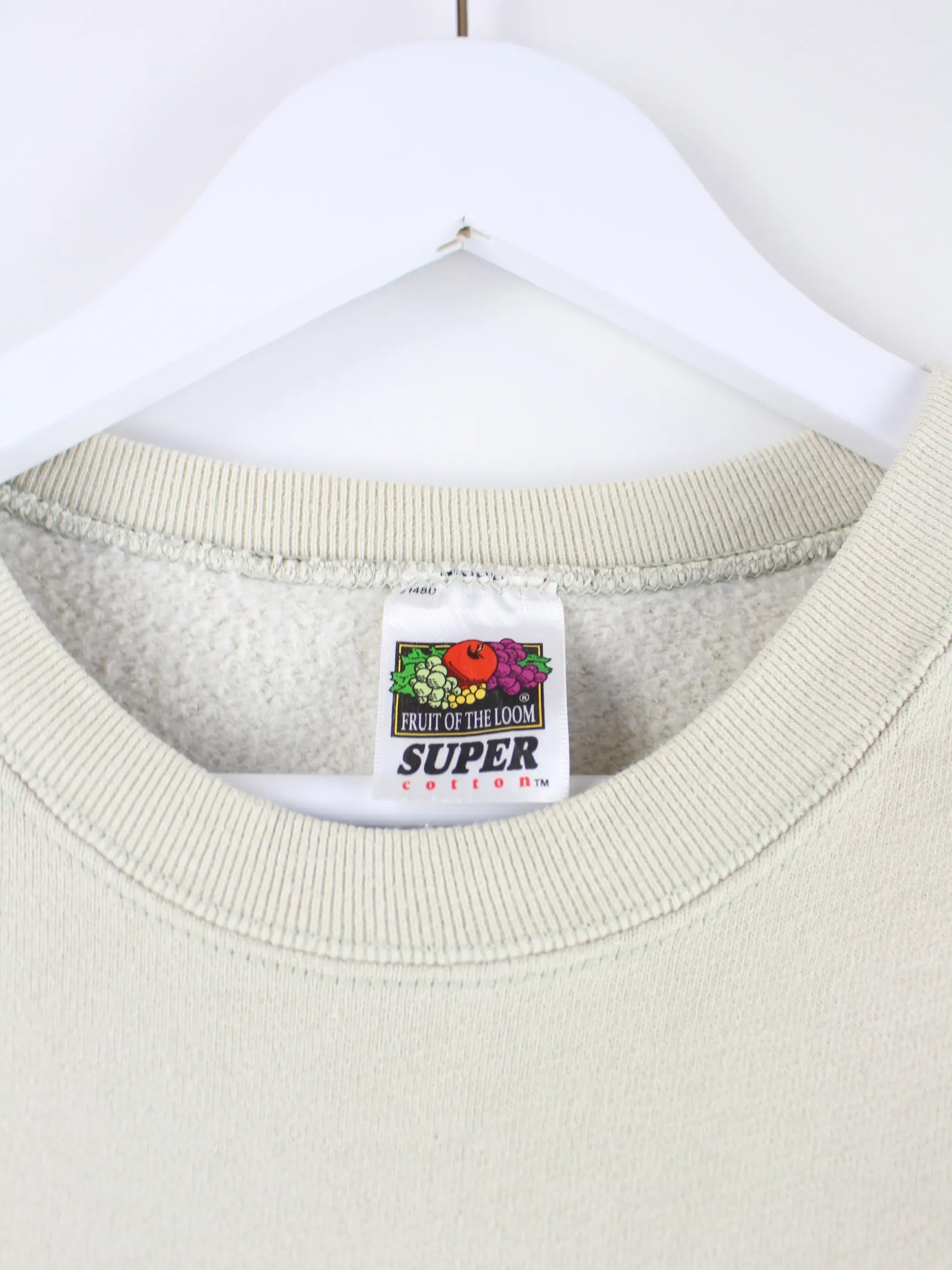 Sweater der Brand Fruit of the Loom in Größe L aus den 90'ern. Er ist aus einer Baumwollmischung hergestellt und in Beige lieferbar.