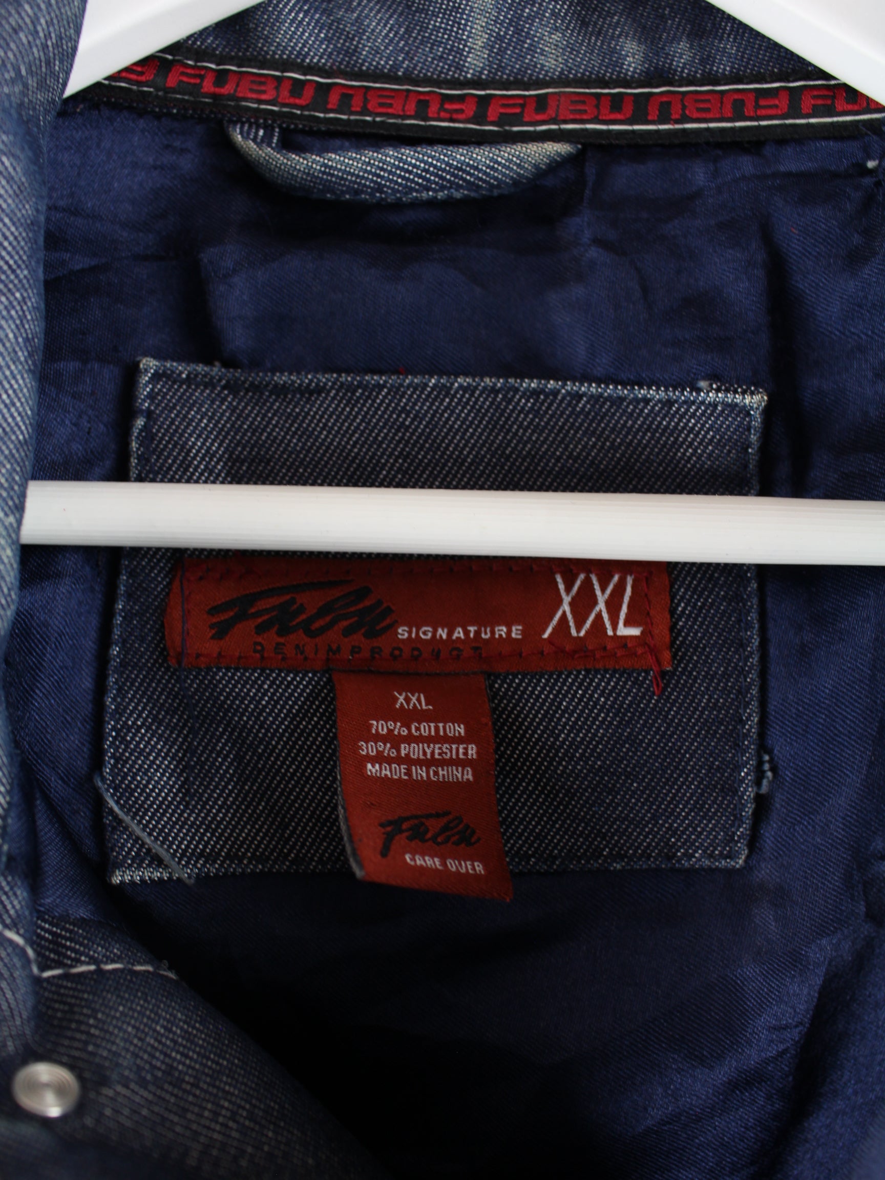 Fubu y2k Embroidered Denim Jeans Jacket Blue XXL
