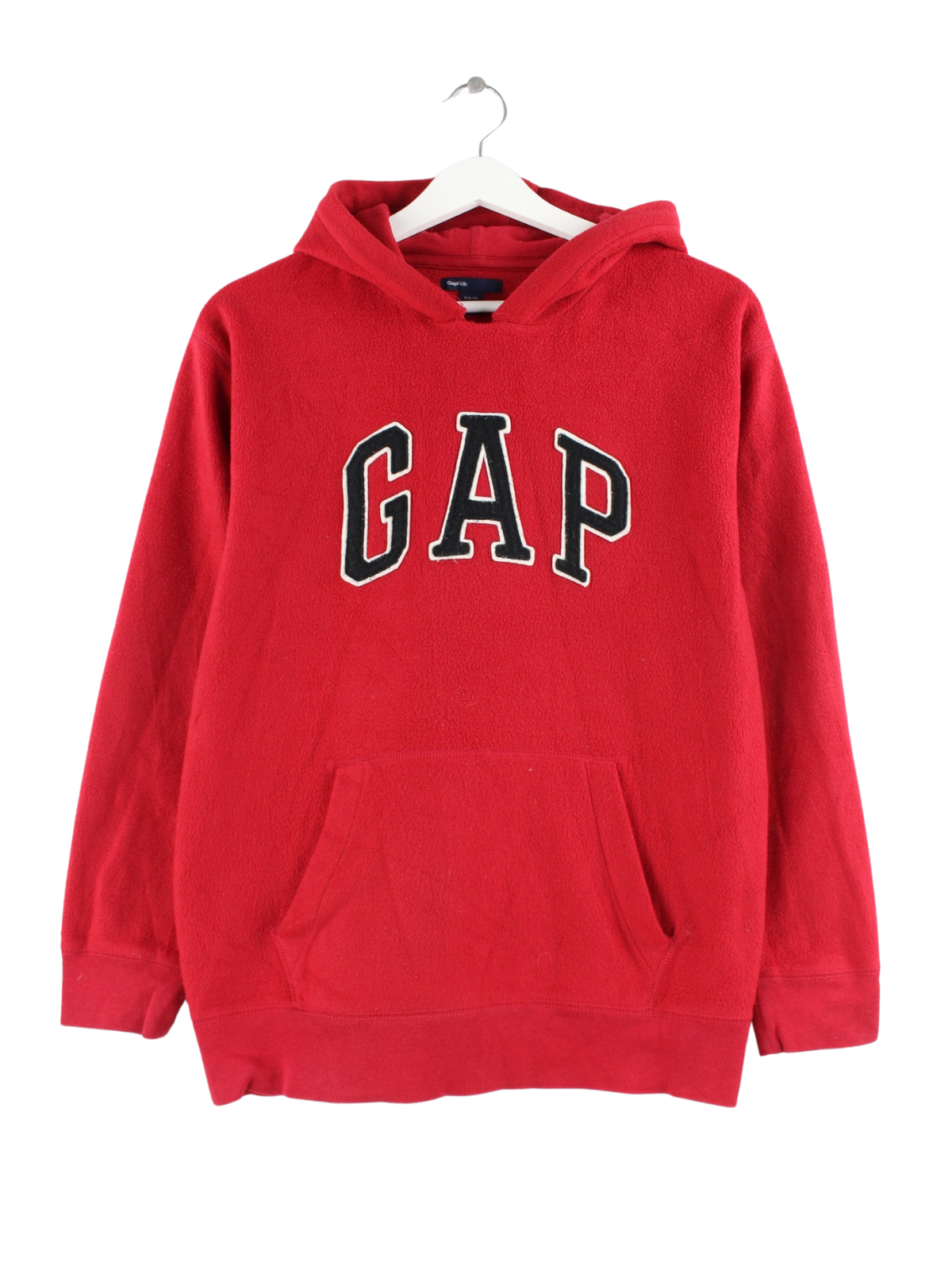 Red hoodie with embroidered GAP brand logo in size XS. It is made of comfortable fleece and is offered in very good condition.
