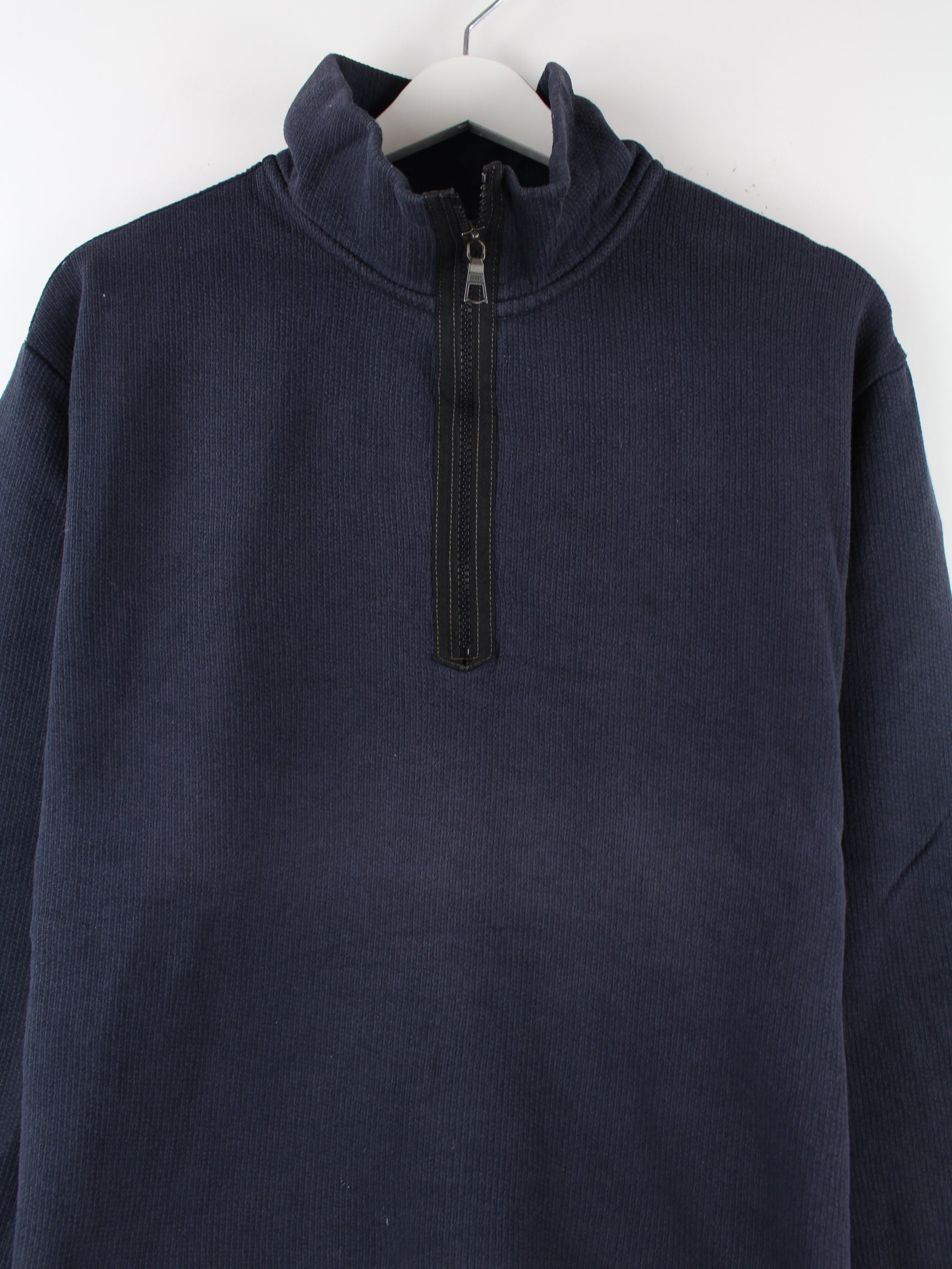Sweater der Marke GAP mit half Zip in Größe L. Er ist aus einer Baumwollmischung angefertigt und in Blau im Bestand.
