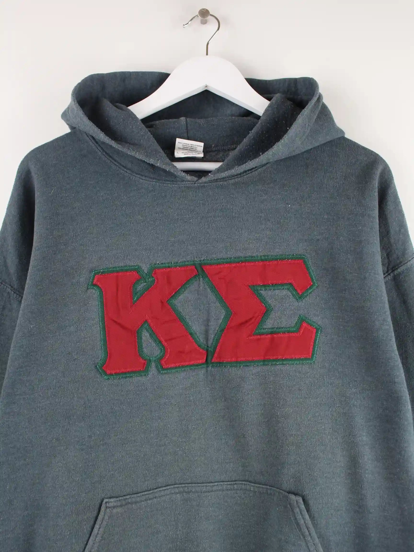 Hoodie der Brand Gildan in Größe L. Er ist aus einer Baumwollmischung gemacht und in Grau vorrätig.