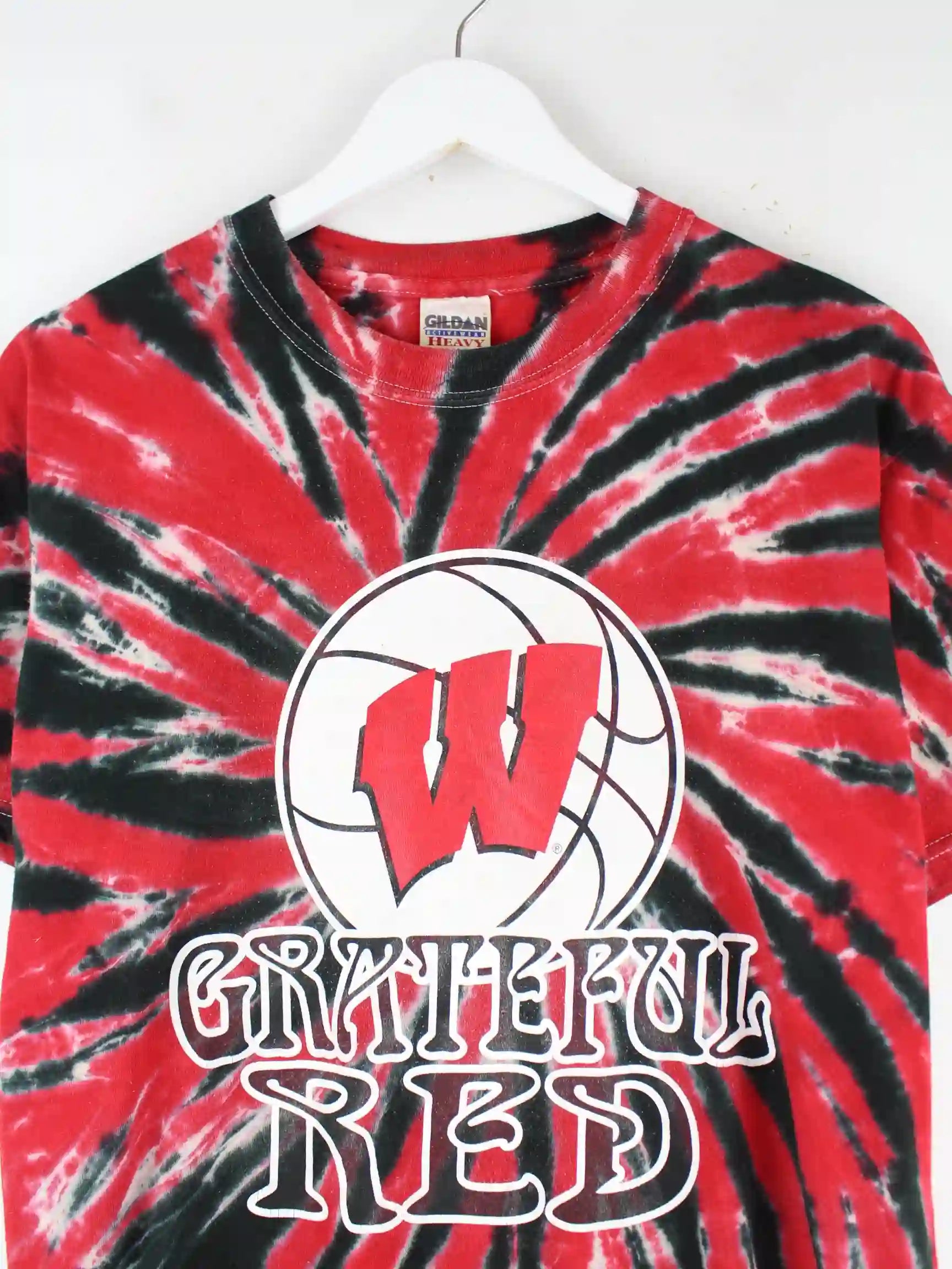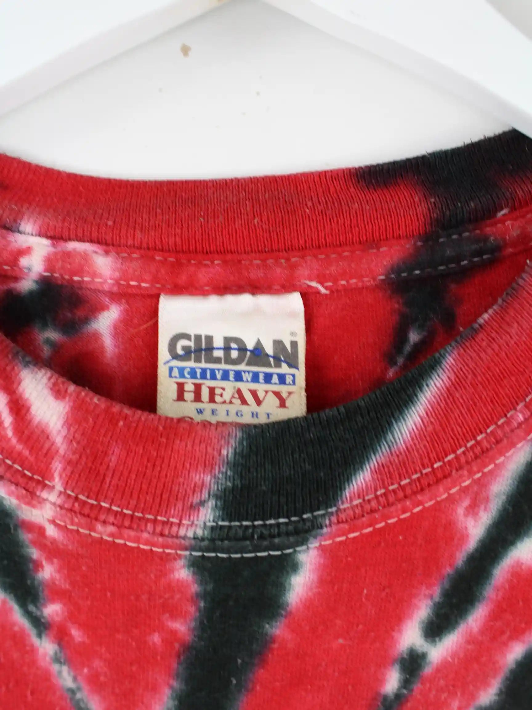 T-Shirt der Marke Gildan in Größe L. Es ist aus Baumwolle angefertigt und in Rot zu bekommen. Mit seltenem Florida Print.