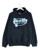 Schwarzer Hoodie der Brand Gildan in Größe L. Er ist aus einer Baumwollmischung und in gutem Zustand auf Lager. Mit chiquem Style Print.