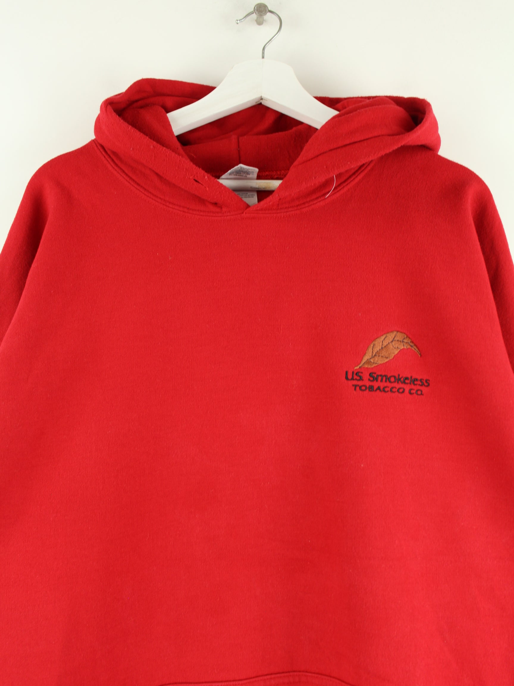 Hoodie from the Gildan label with embroidery in size 3XL. It is made from a cotton blend and is available in red.