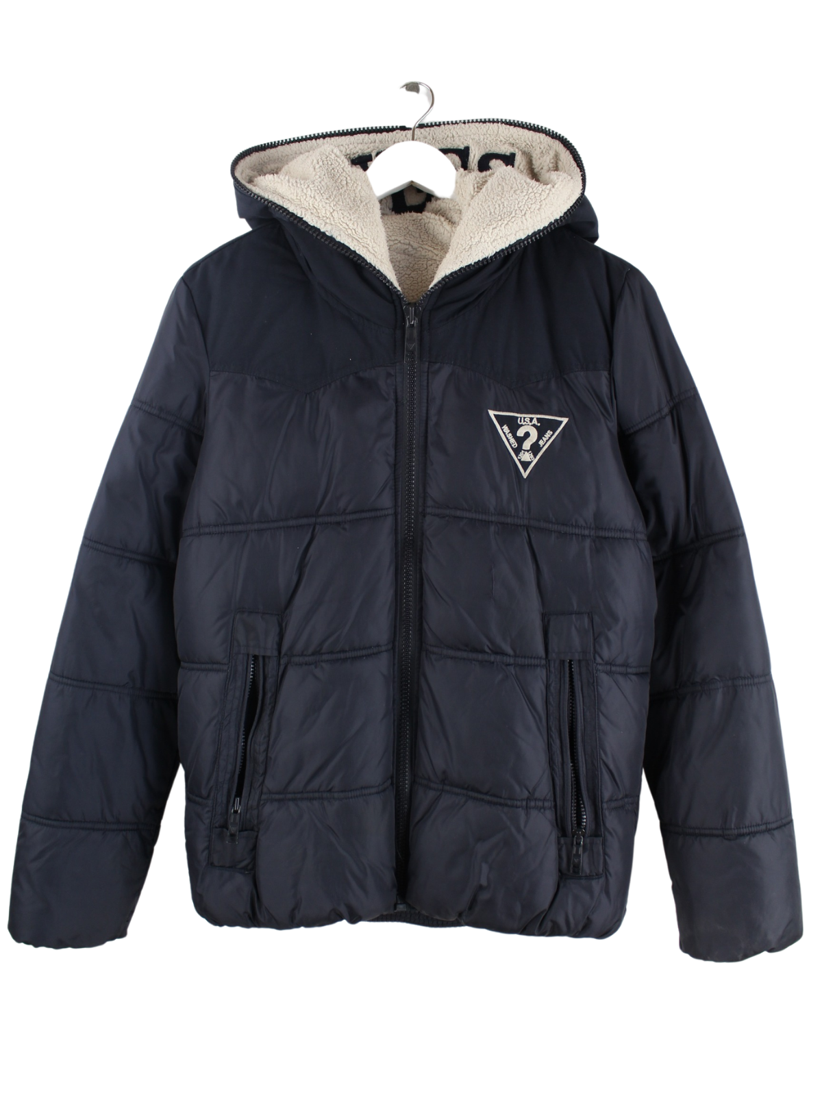 Jacke vom Label Guess in Größe M. Sie ist aus Synthetik gemacht und in Blau im Bestand.