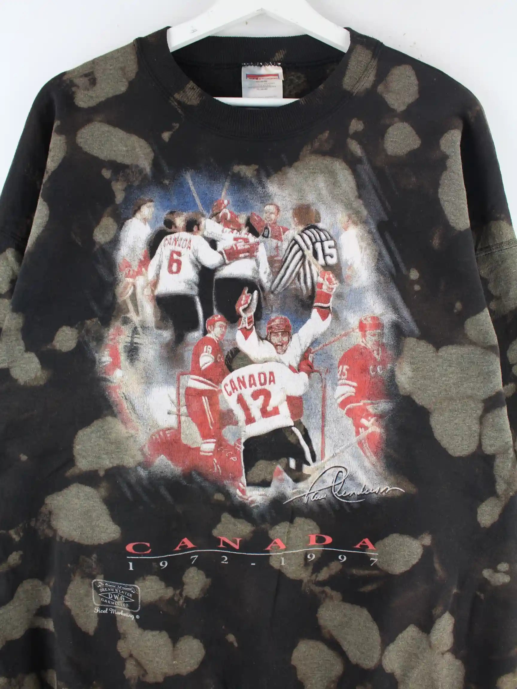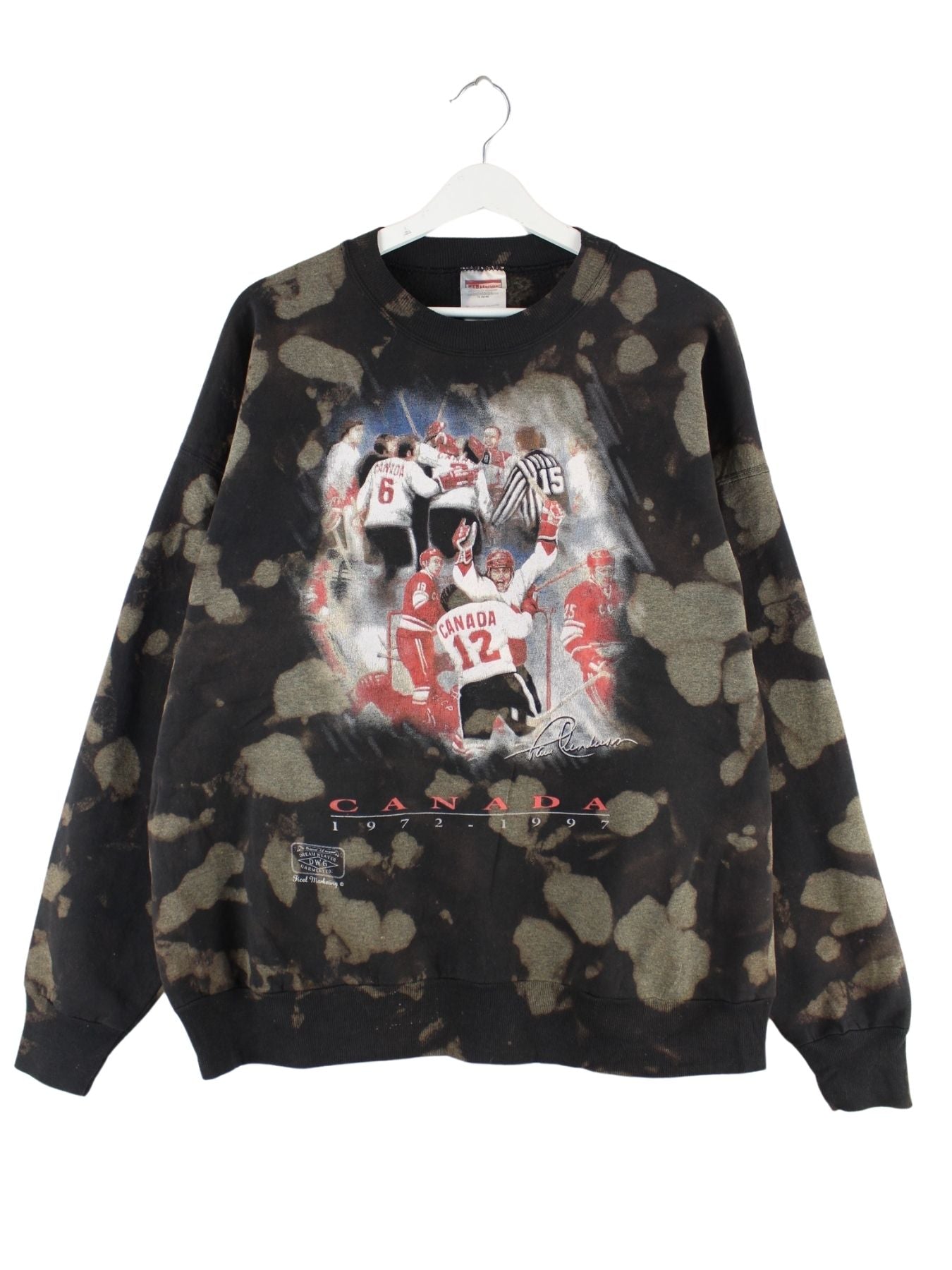 Hanes 1997 Vintage Canada Hockey Print Rework Tie Dye Sweater Grau XL