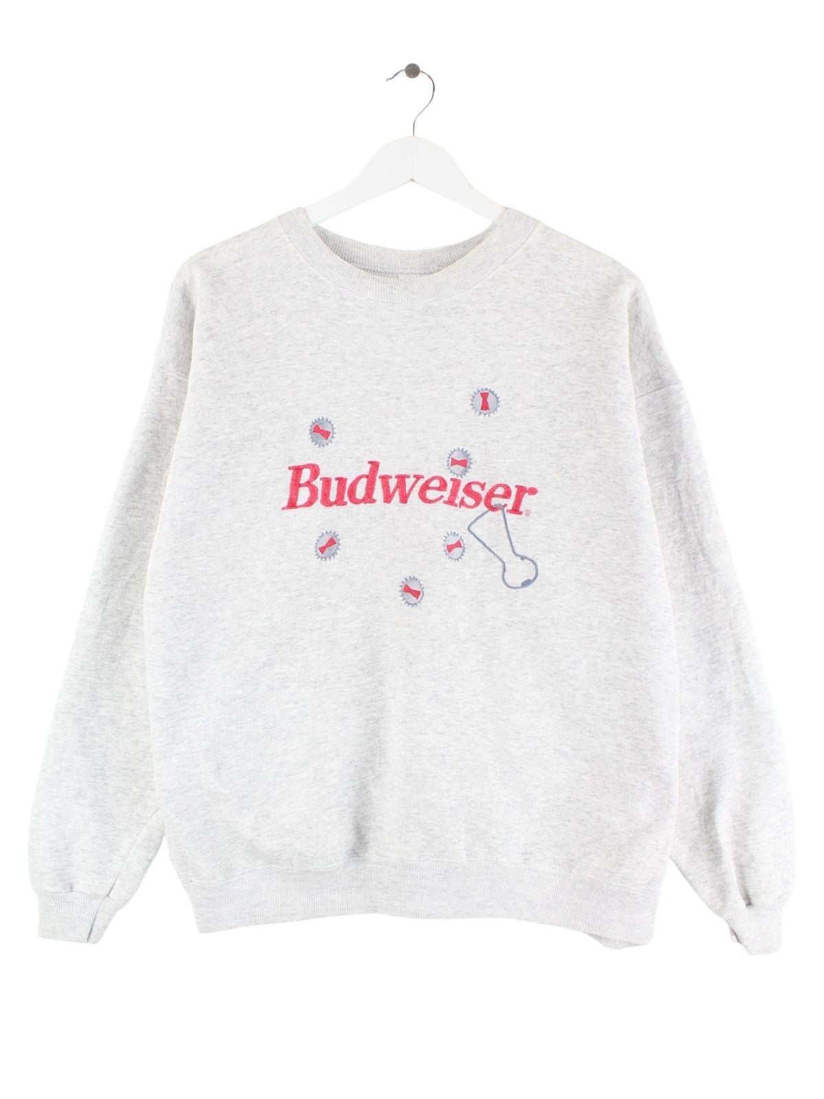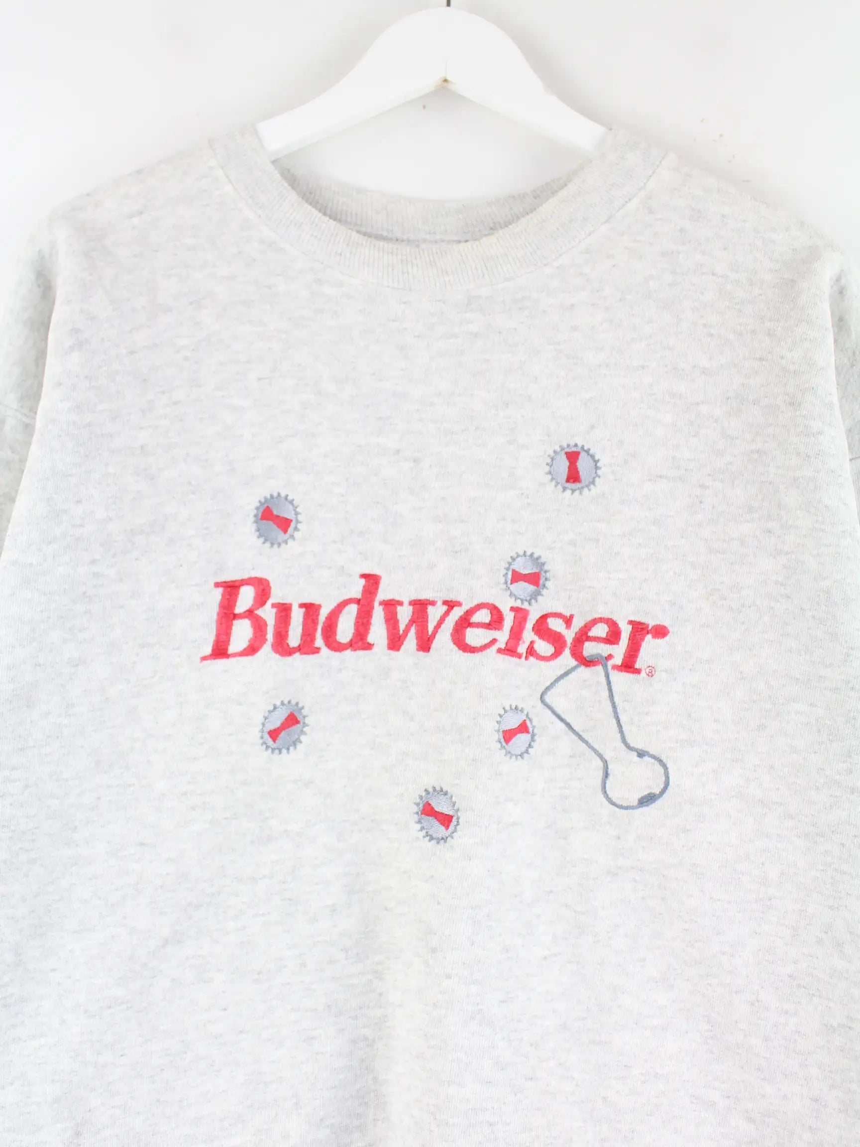 Hanes 90s Vintage Budweiser Embroidered Sweater Grau L