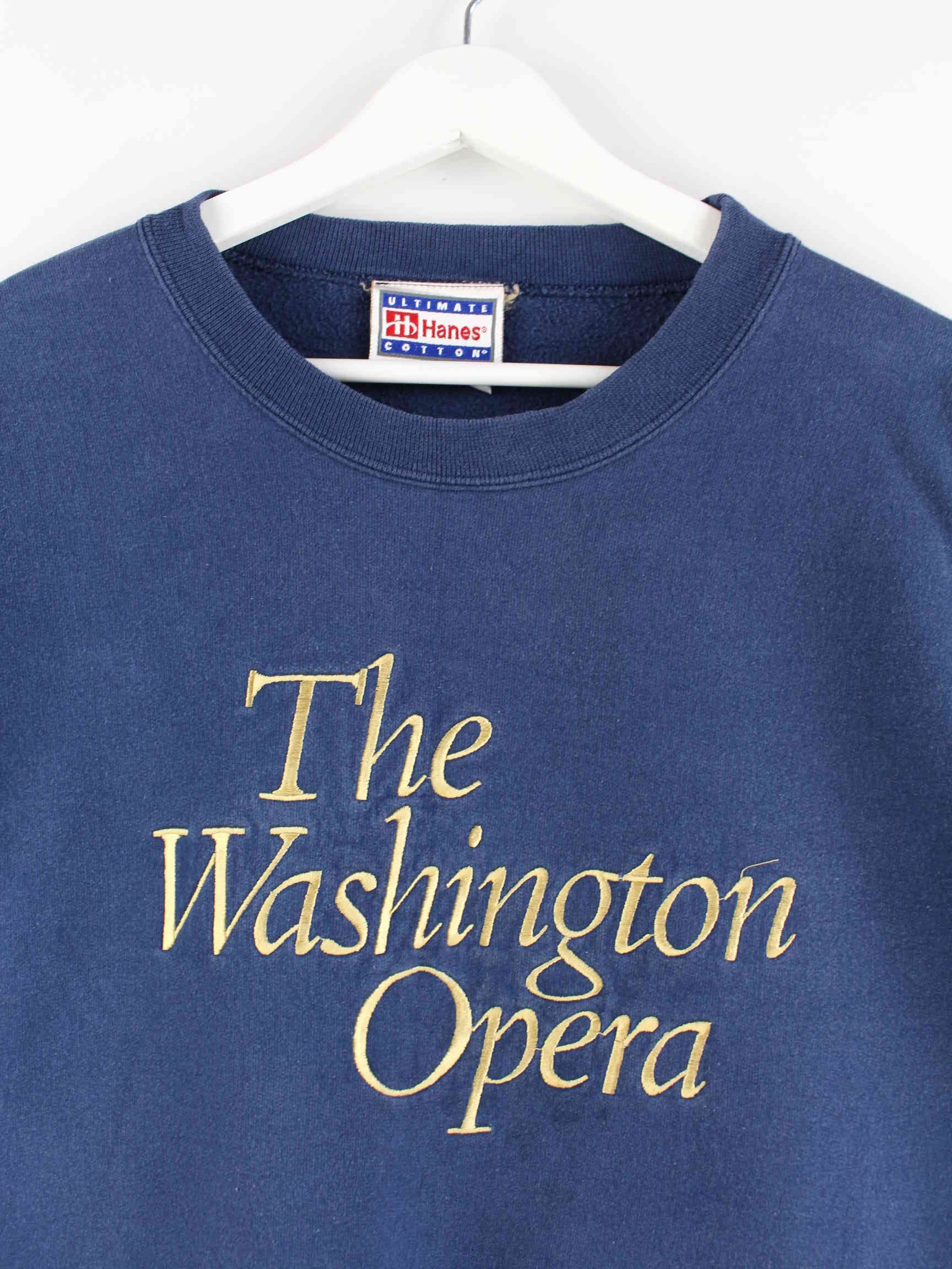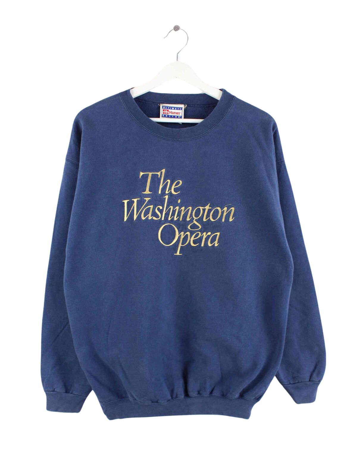 Hanes 90s Vintage Embroidered Sweater Blue M