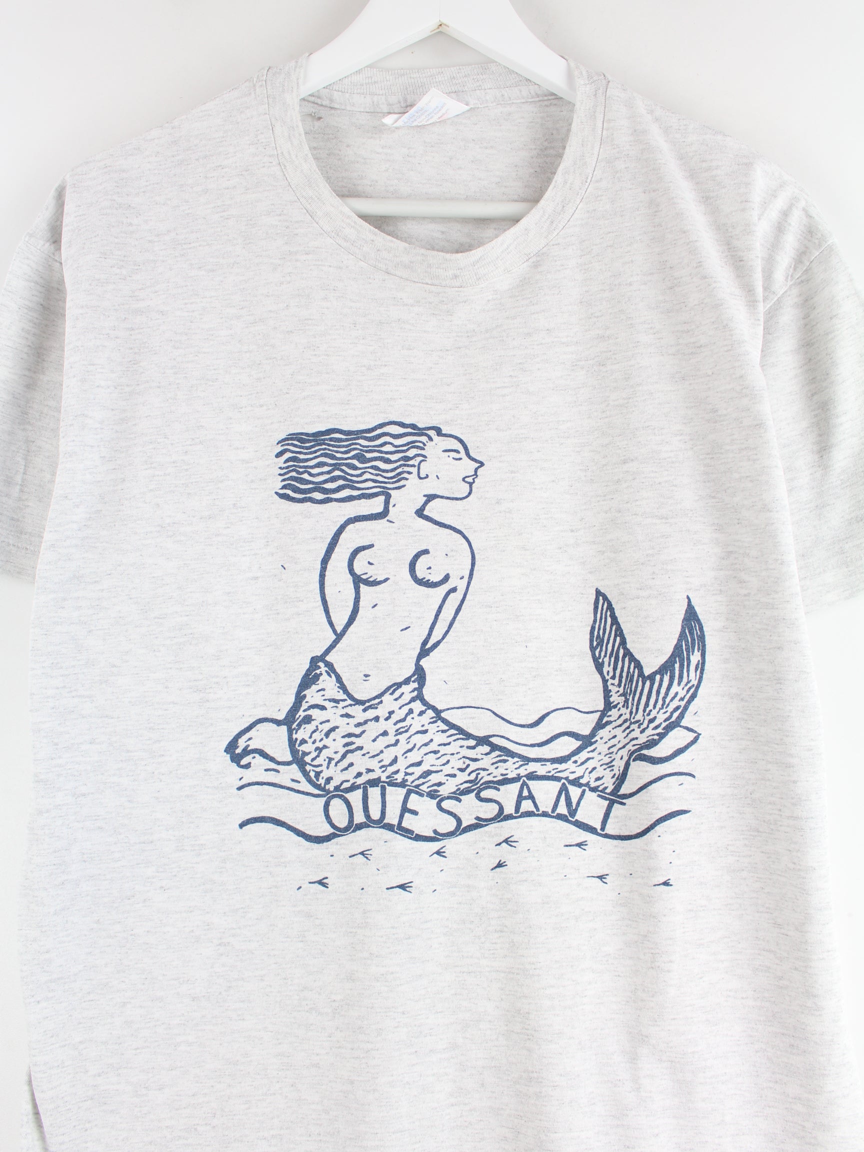 Hanes 90s Vintage Mermaid Print Single Stitch T-Shirt Grey L