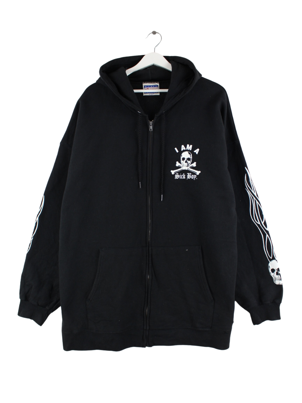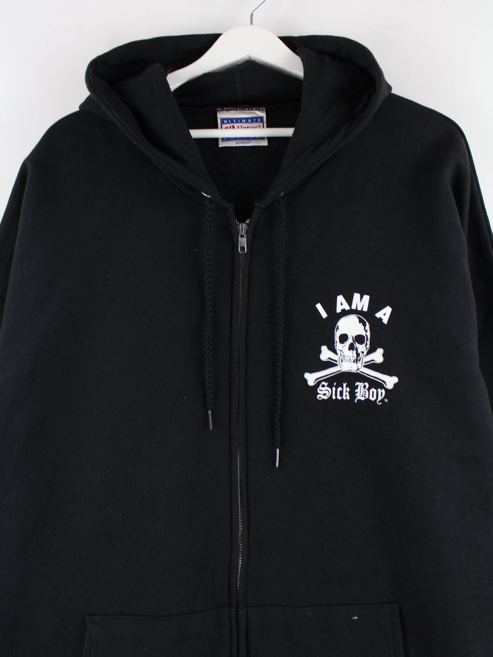Hanes 90s Vintage Sick Boy Skull Print Zip Hoodie Schwarz XXL