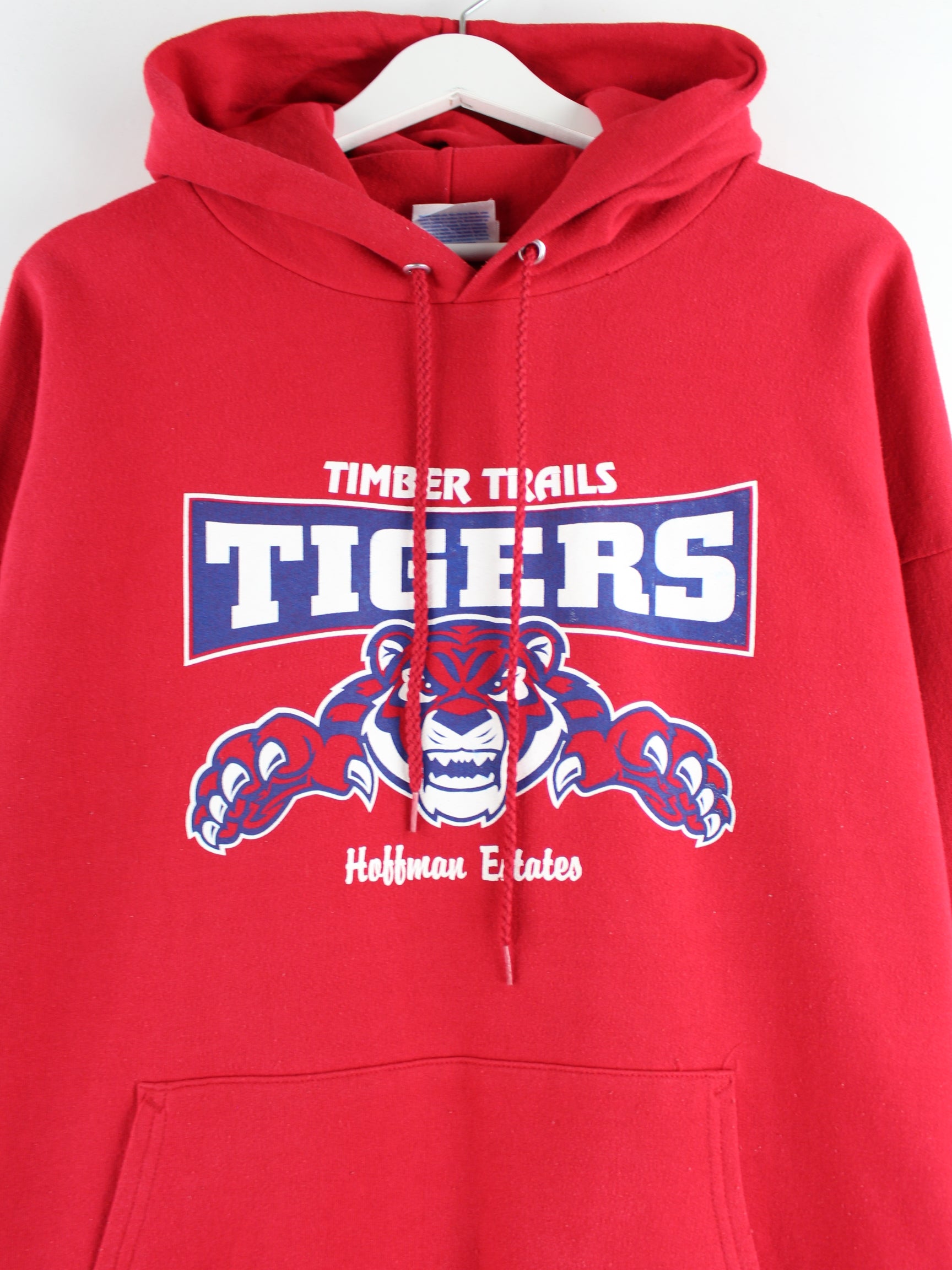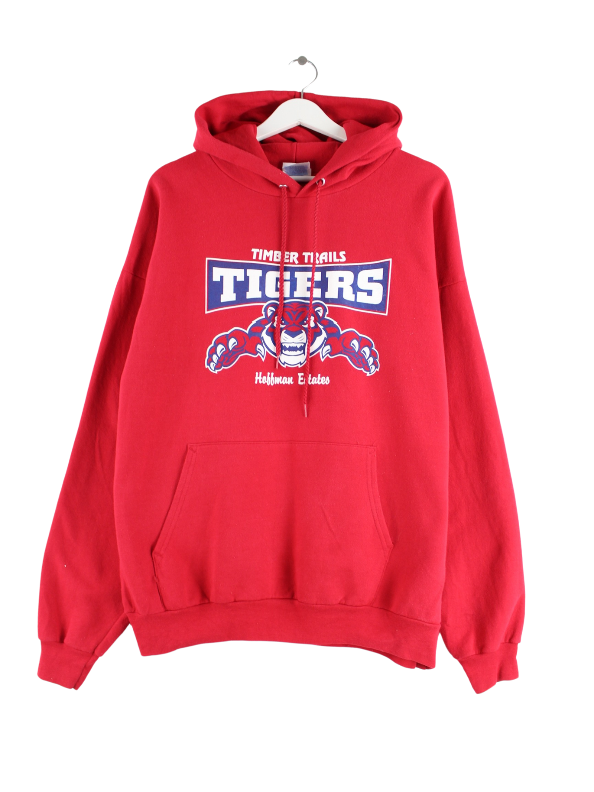 Roter Hoodie aus dem Hause Hanes in Größe XL. Er ist aus einer Baumwollmischung gefertigt. Den Zustand würden wir als 'In Ordnung' bezeichnen (vergl. Bilder).Mit schönem Tigers Print.