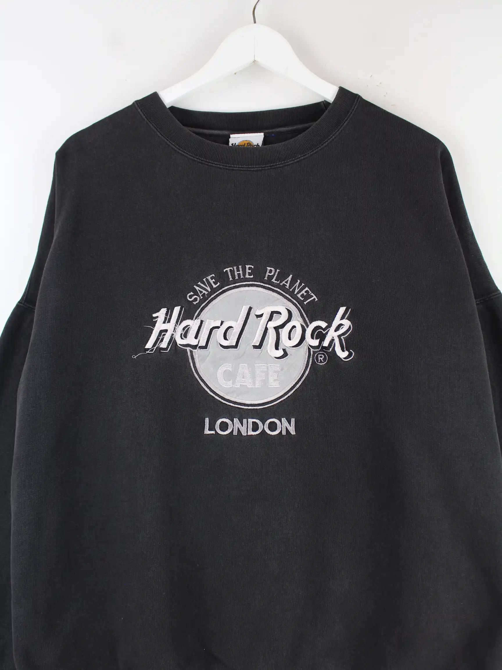Hard Rock Cafe 90s Vintage London Embroidered Sweater Schwarz XL
