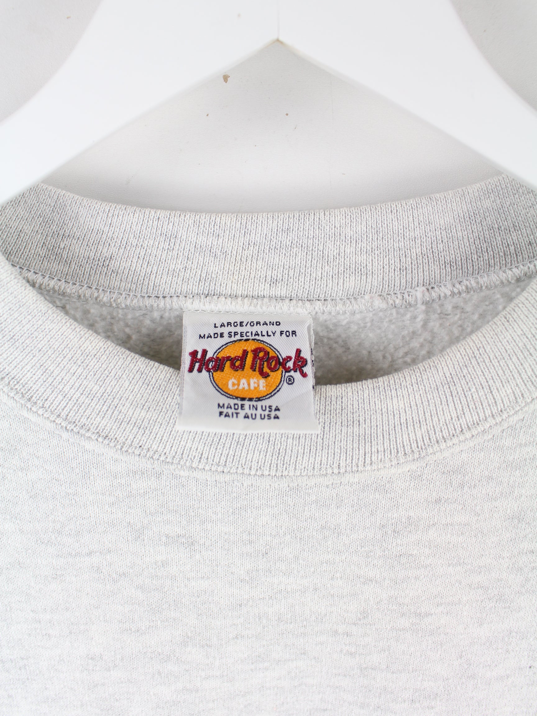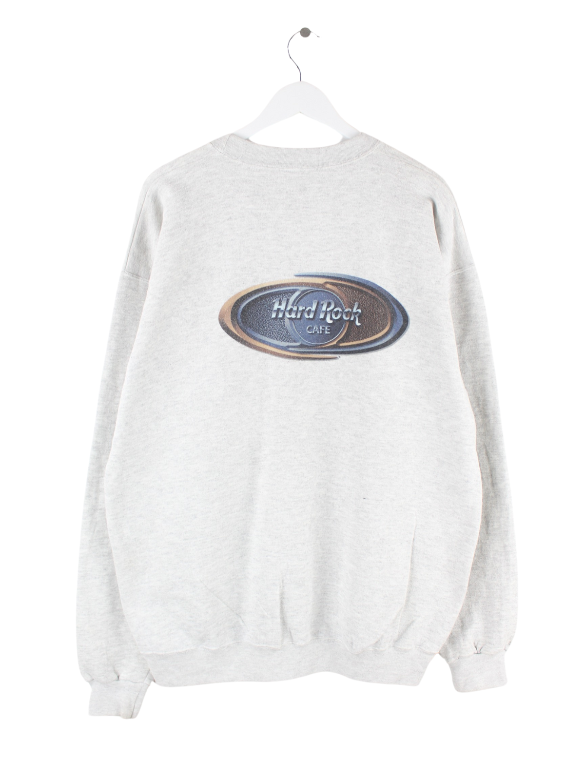 Grauer Sweater der Marke Hard Rock Cafe aus den 90'ern in Größe XXL. Er ist aus einer Baumwollmischung und in gutem Zustand zu bekommen.