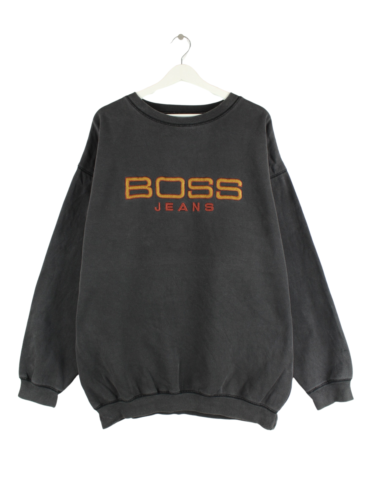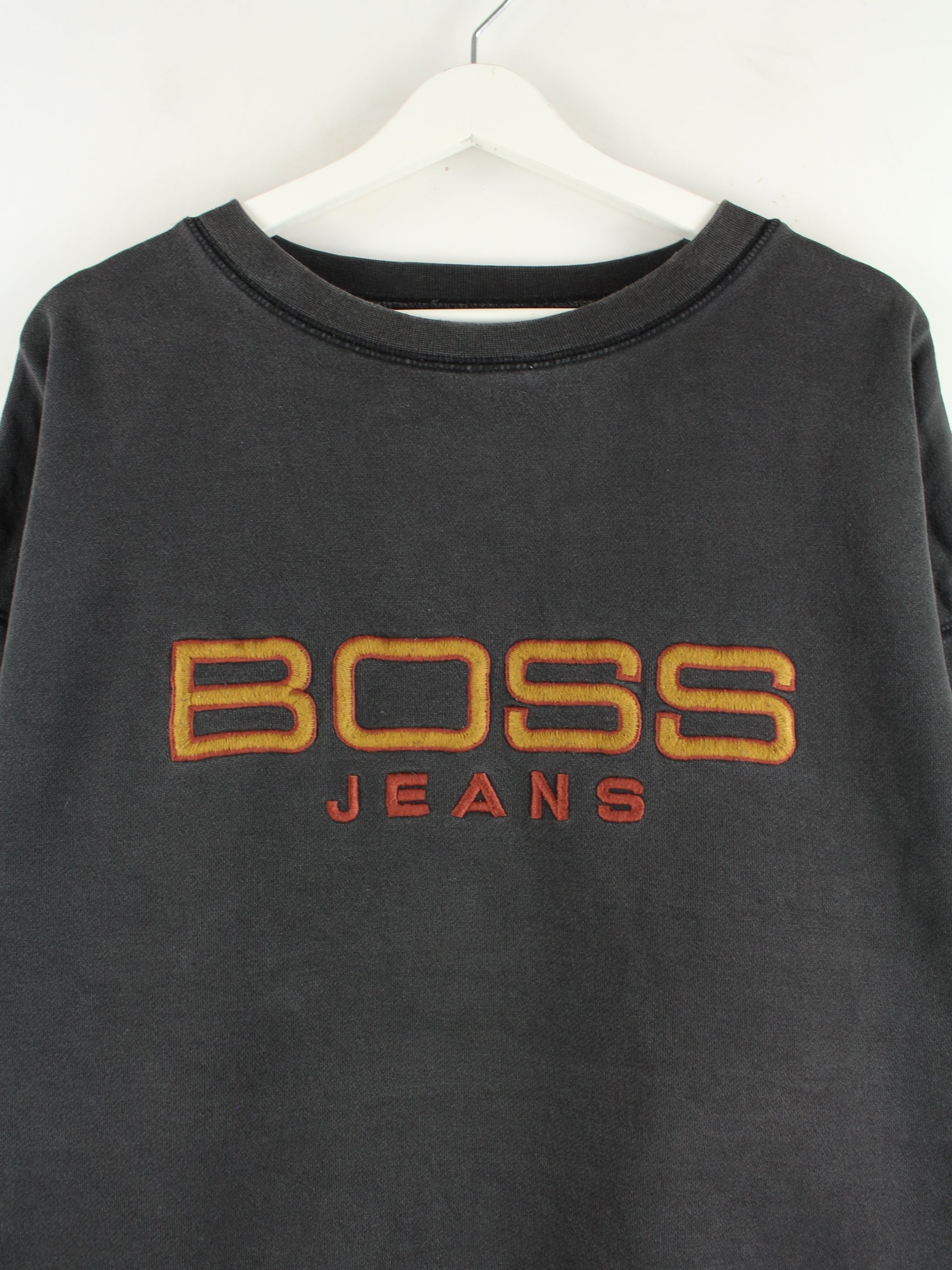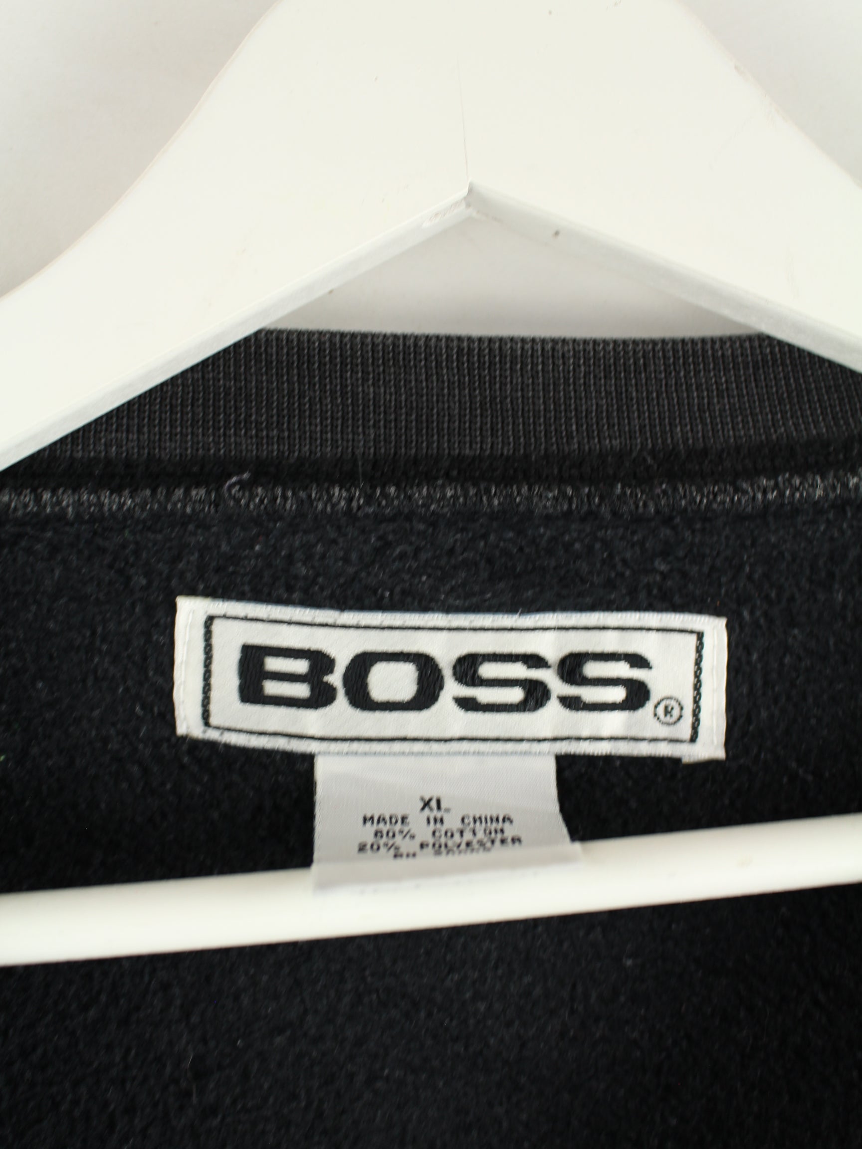 Hugo Boss sweater with embroidered motifs in size XL from the 90's. It is made from a cotton blend and is available in black.