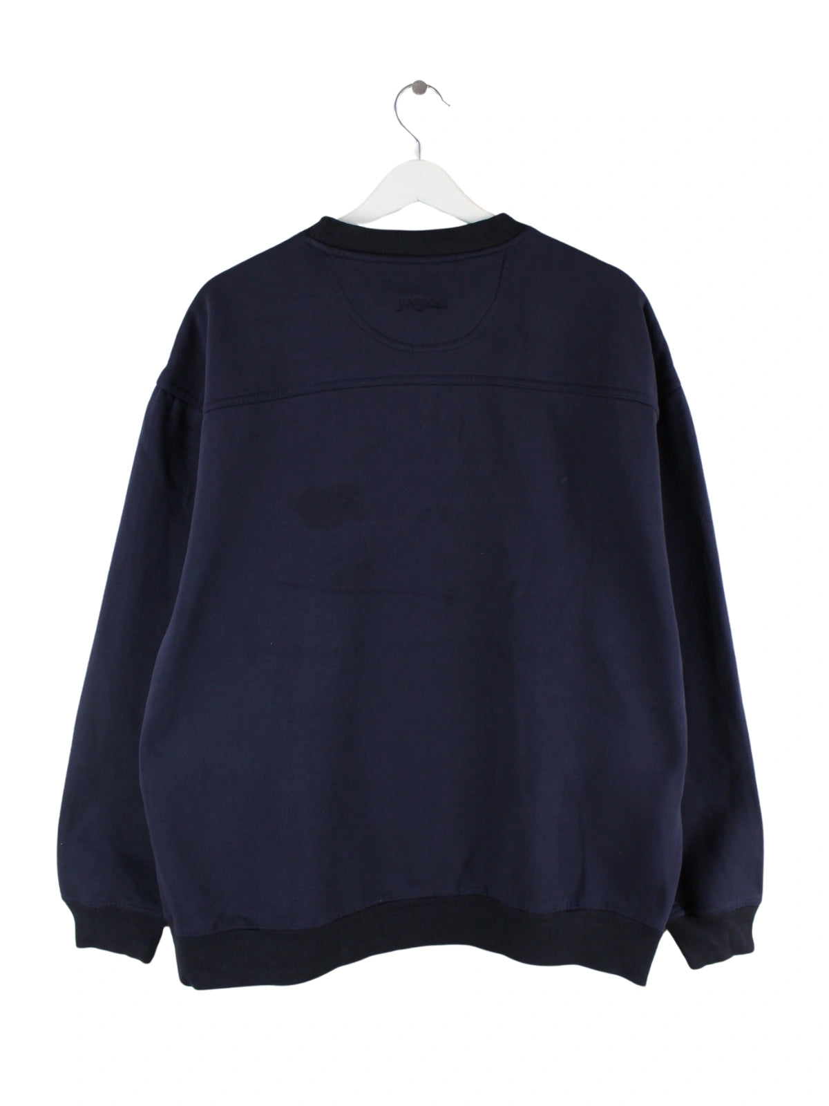Blauer Sweater der Marke Jansport aus den 90'ern in Größe XL. Er ist aus einer Baumwollmischung gefertigt und in gutem Zustand lieferbar.