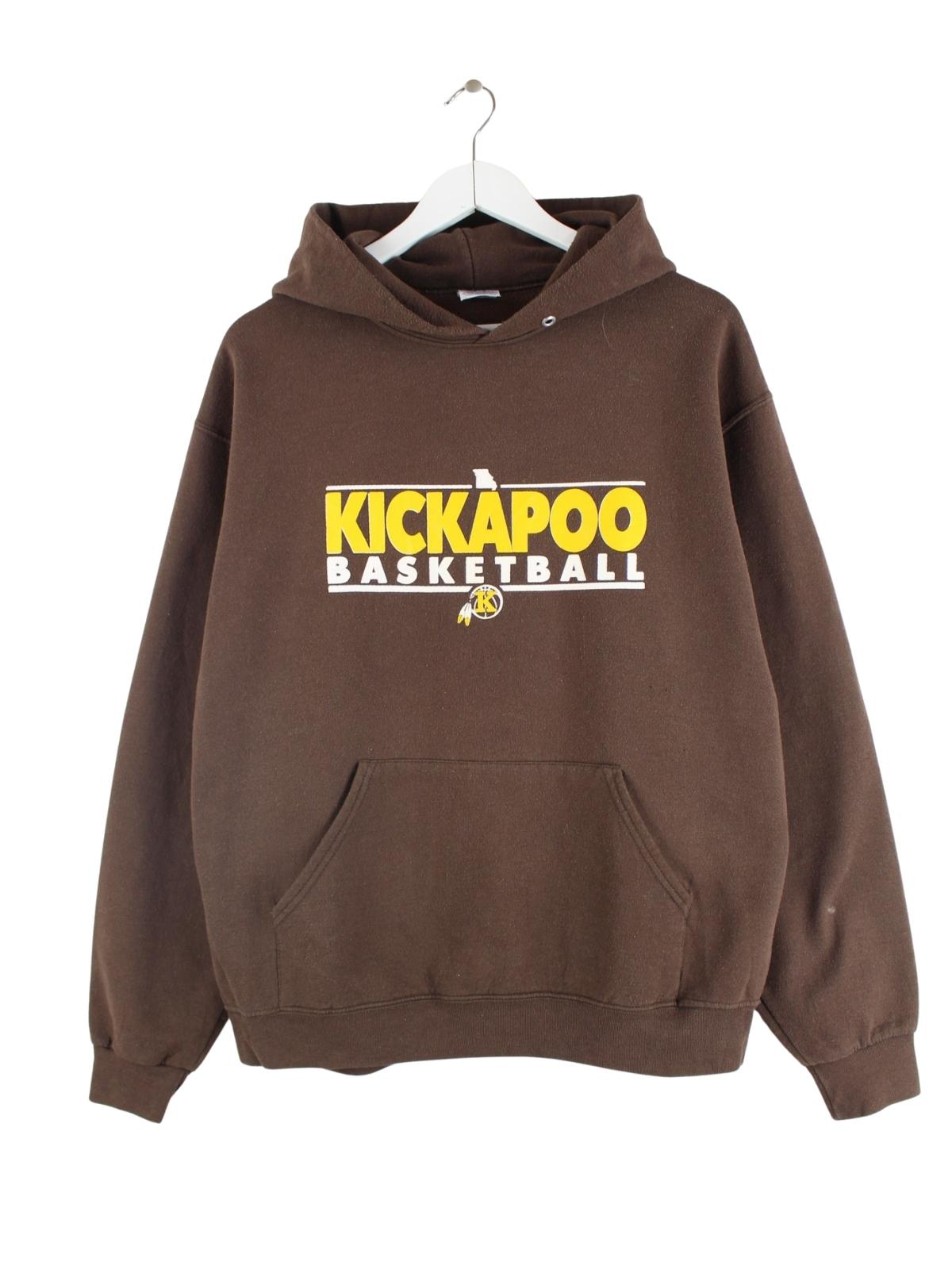 Jerzees 00s Kickapoo Basketball Print Hoodie Braun L