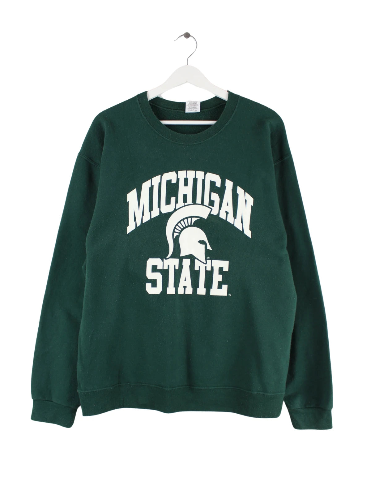Sweater der Marke Jerzees in Größe L. Er ist aus einer Baumwollmischung hergestellt und in Grün vorrätig. Mit schönem State Print.