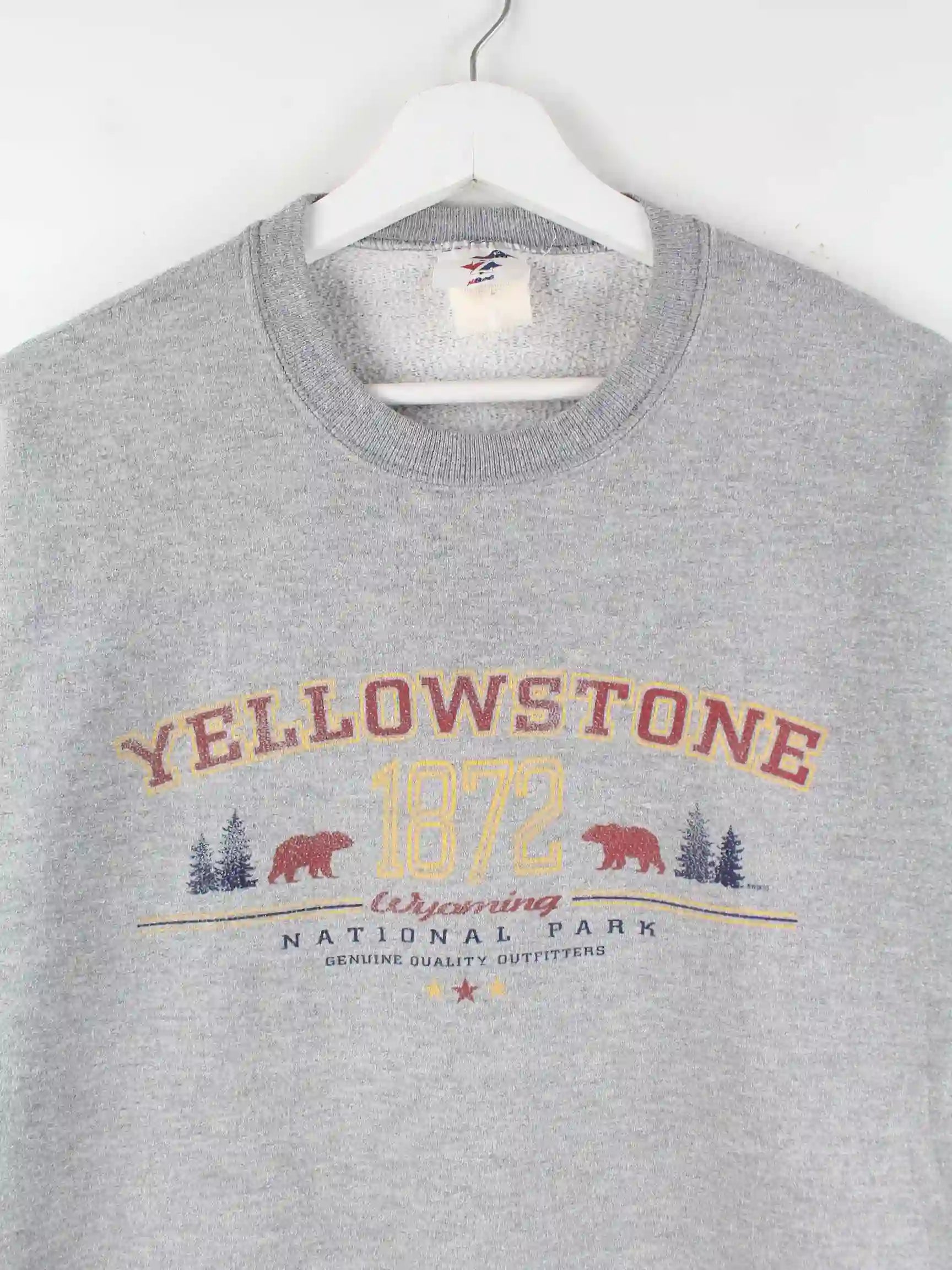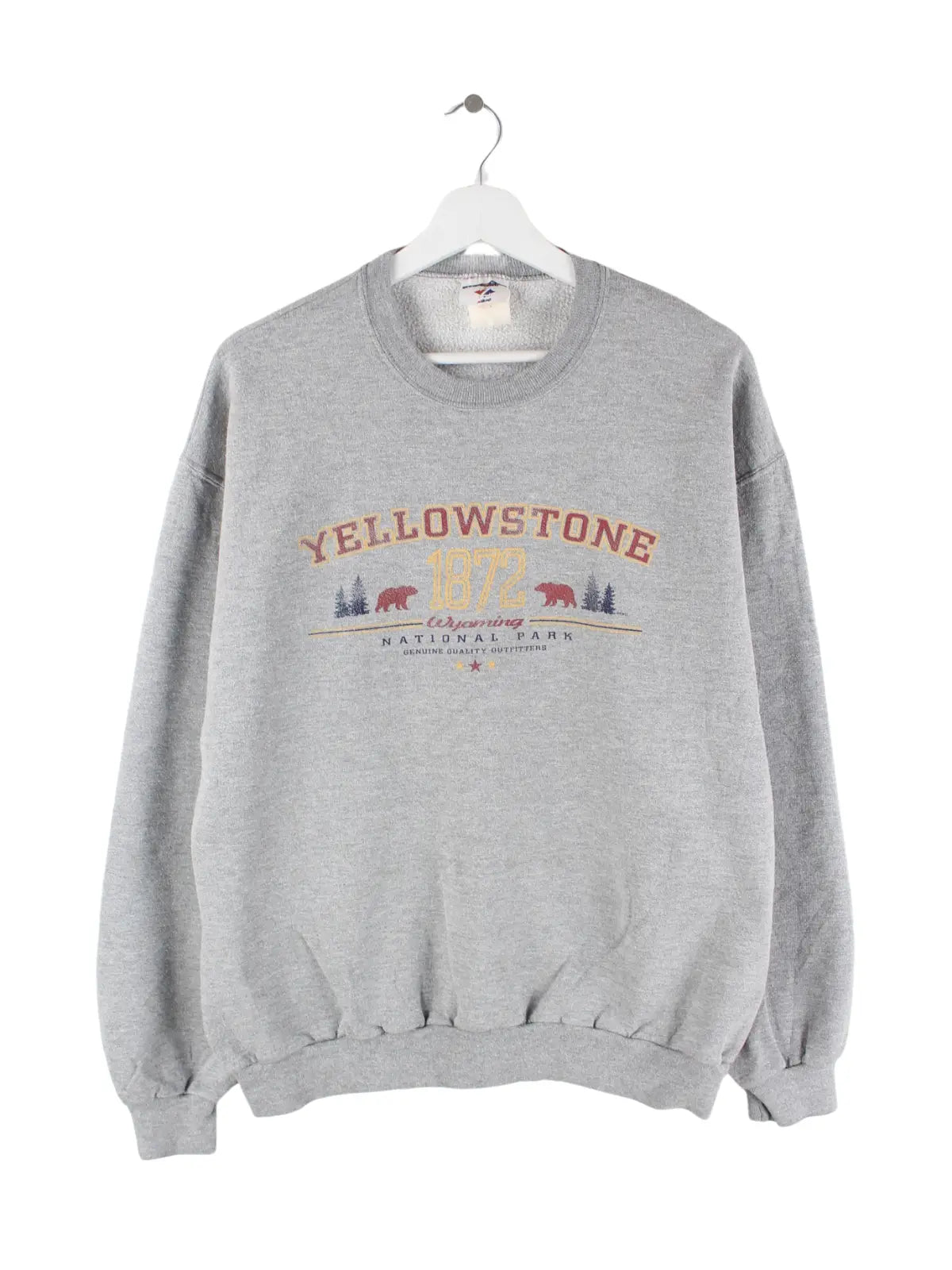 Grauer Sweater vom Brand Jerzees in Größe L. Er ist aus einer Baumwollmischung und in sehr gutem Zustand im Angebot. Mit tollem Yellowstone Print.