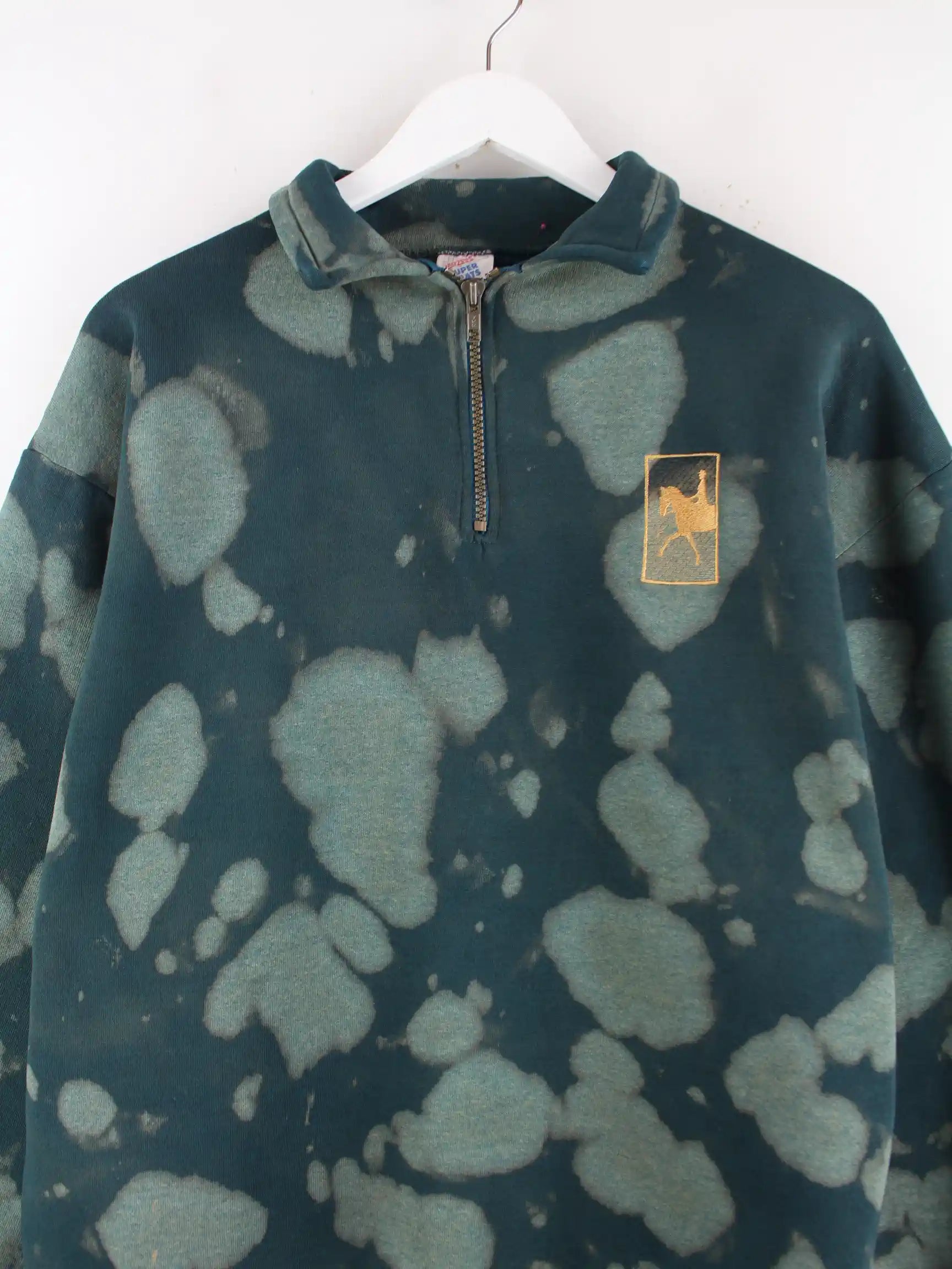 Jerzees 90s Vintage Horse Half Zip Tie Dye Sweater Grün L