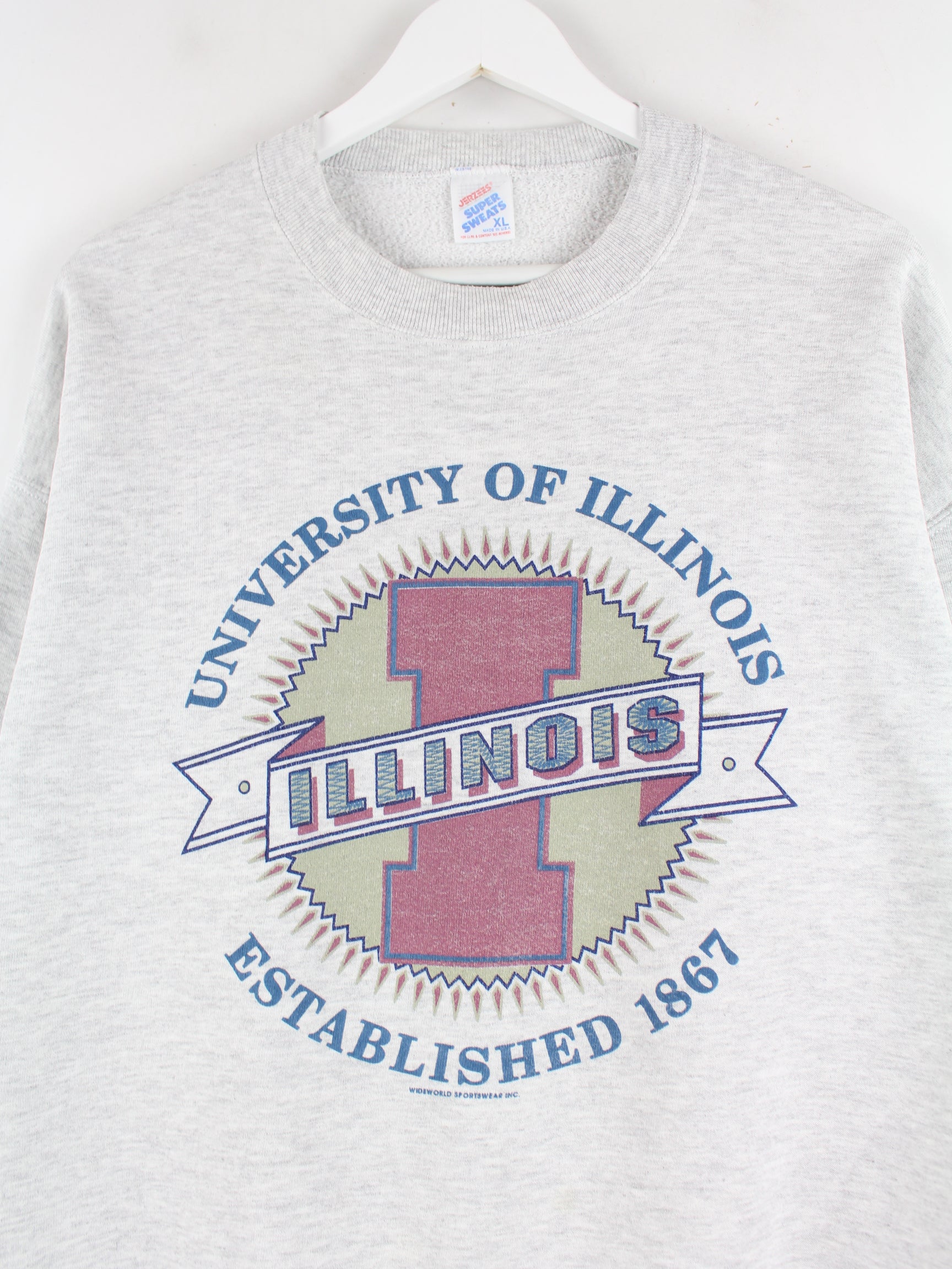 Jerzees 90s Vintage University Illinois Print Sweater Grau XL