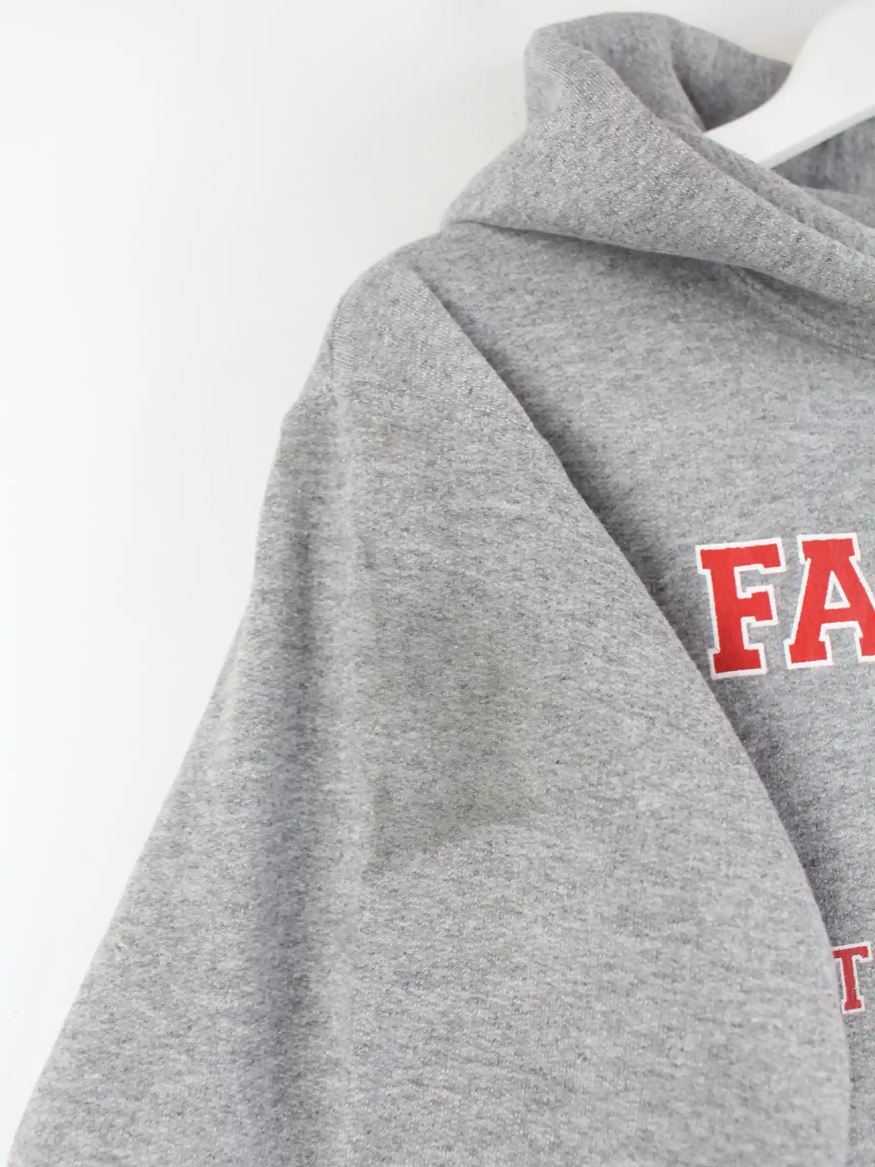 Hoodie aus dem Hause Jerzees in Größe S. Er ist aus einer Baumwollmischung und in Grau bei uns zu bekommen. Mit schickem University Print.