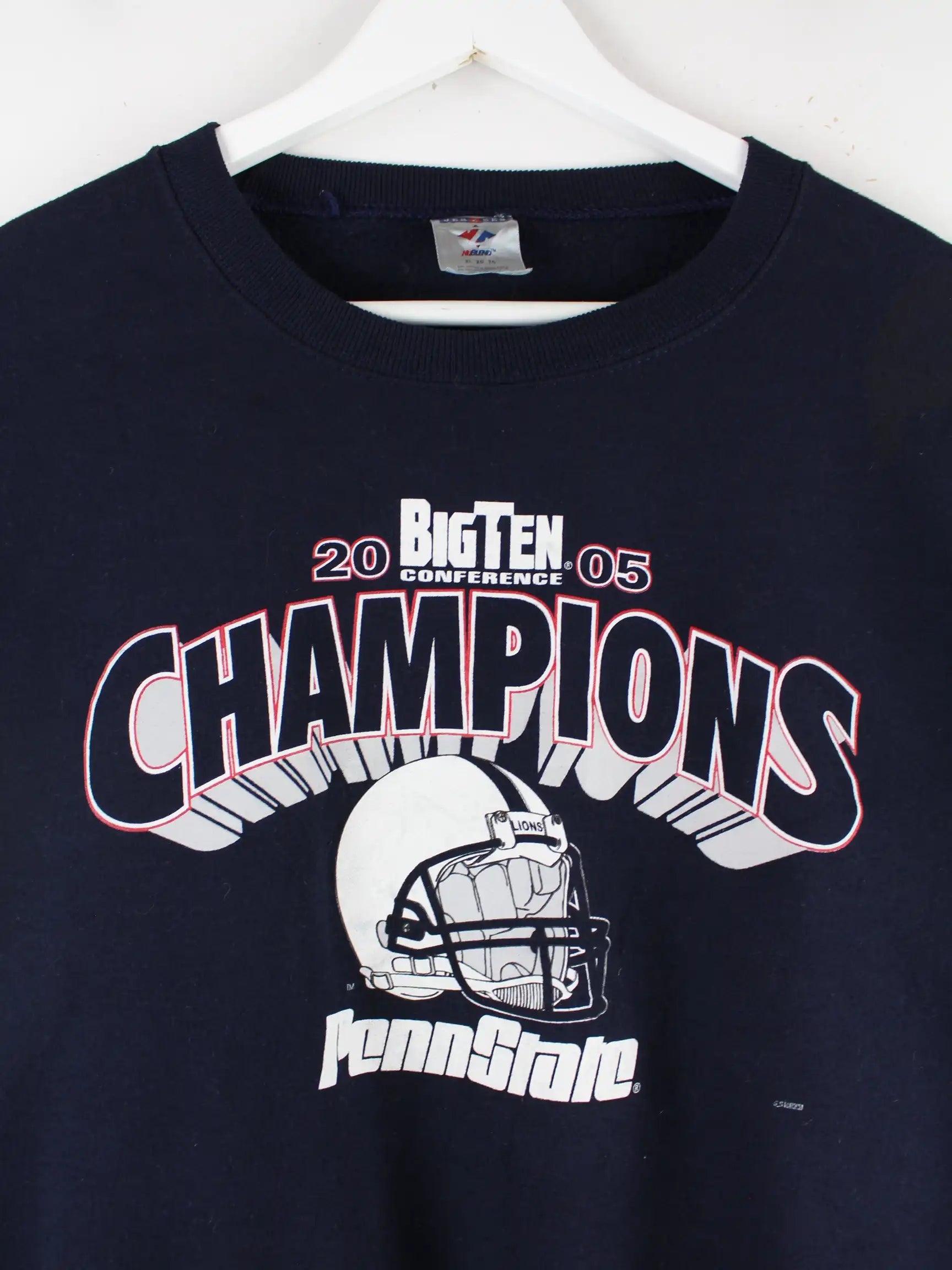 Blauer Sweater der Marke Jerzees in Größe XL. Er ist aus einer Baumwollmischung angefertigt und in sehr gutem Zustand zu haben. Mit tollem Football Print.