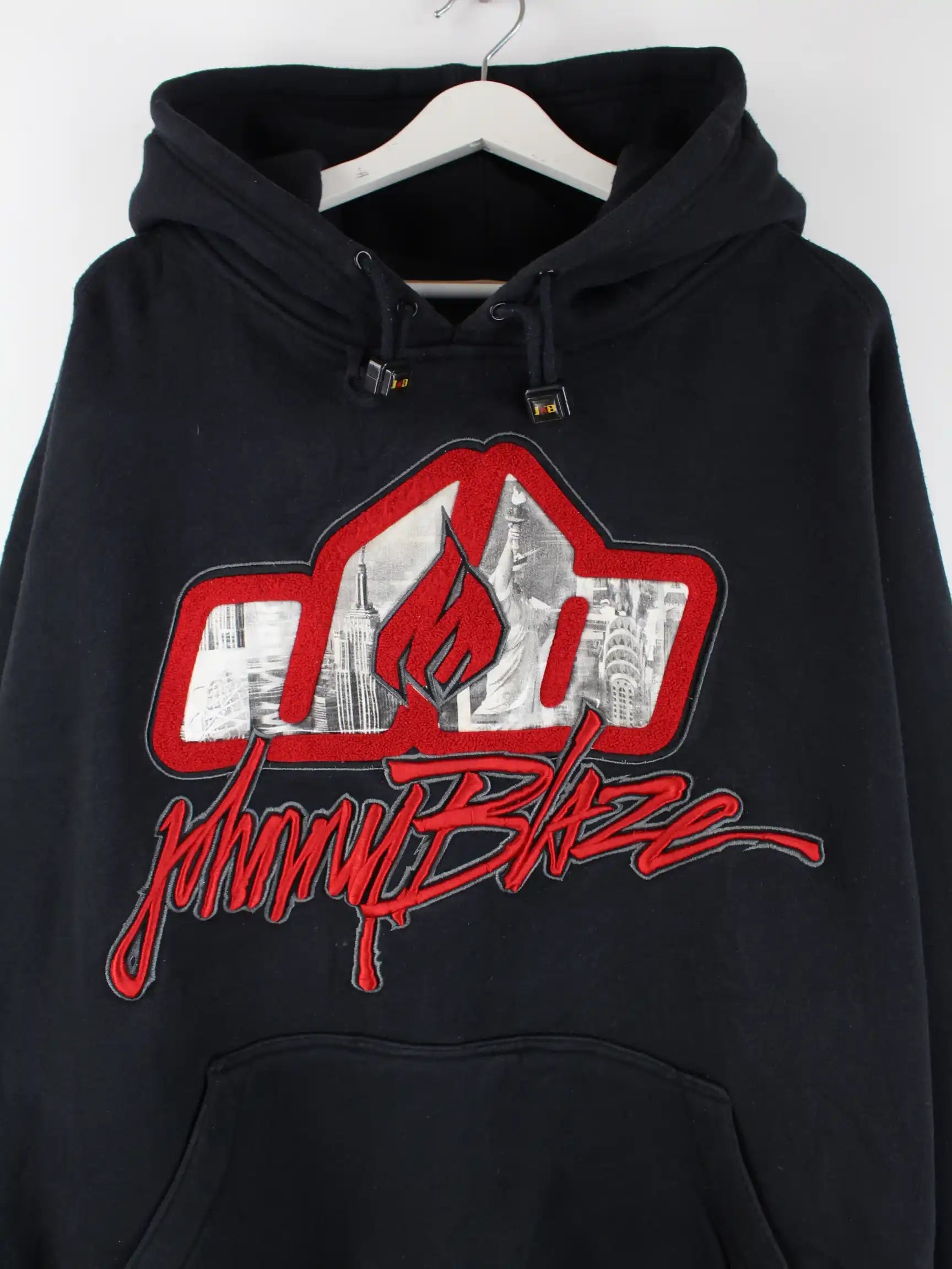 Hoodie vom Brand Johnny Blaze in Größe XL aus Anfang der 2000'er. Er ist aus einer Baumwollmischung hergestellt und in Schwarz zu haben.