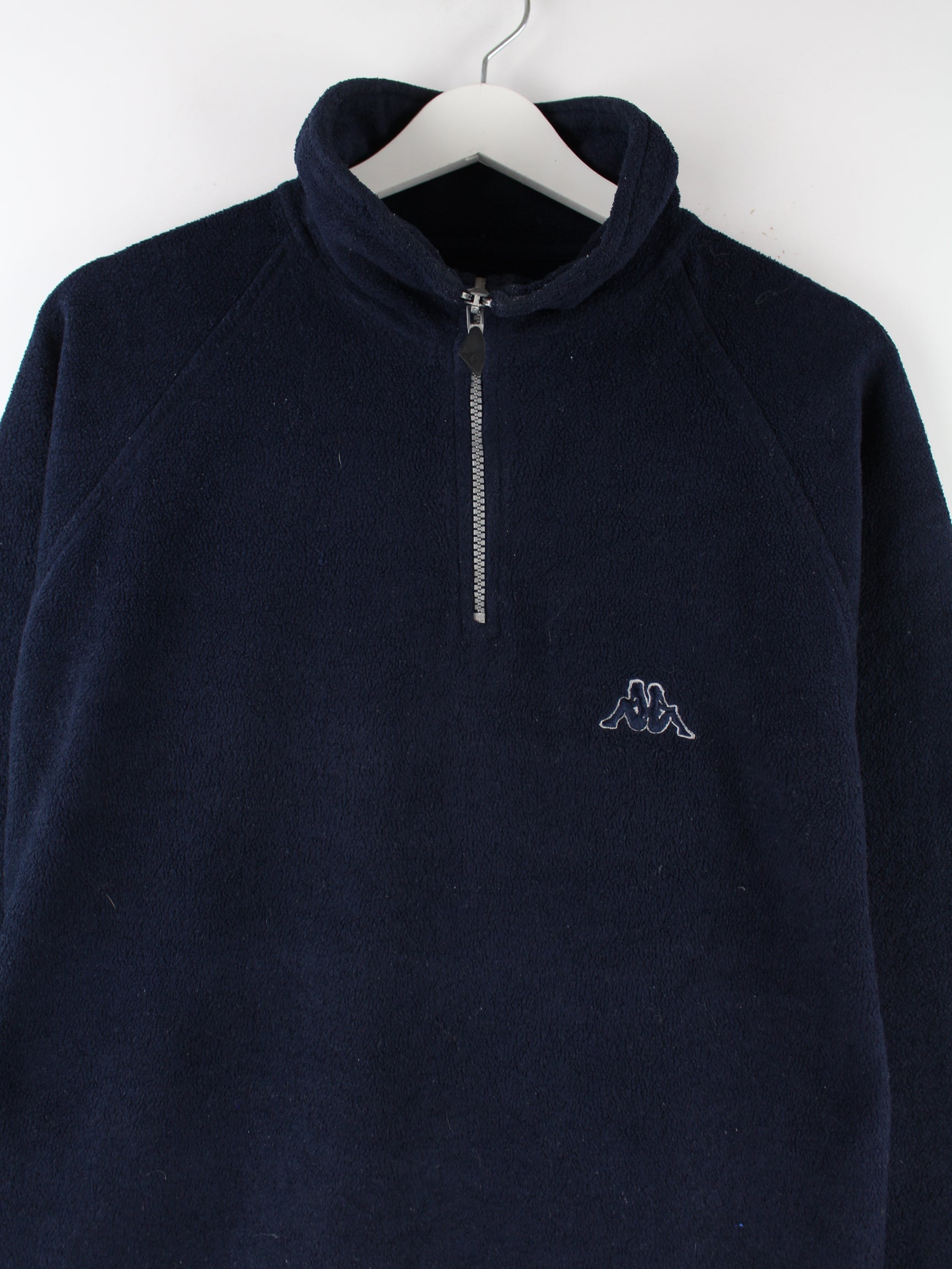 Sweater der Brand Kappa mit kurzem Reißverschluß in Größe L. Er ist aus weichem Fleece und in Blau in Stock.