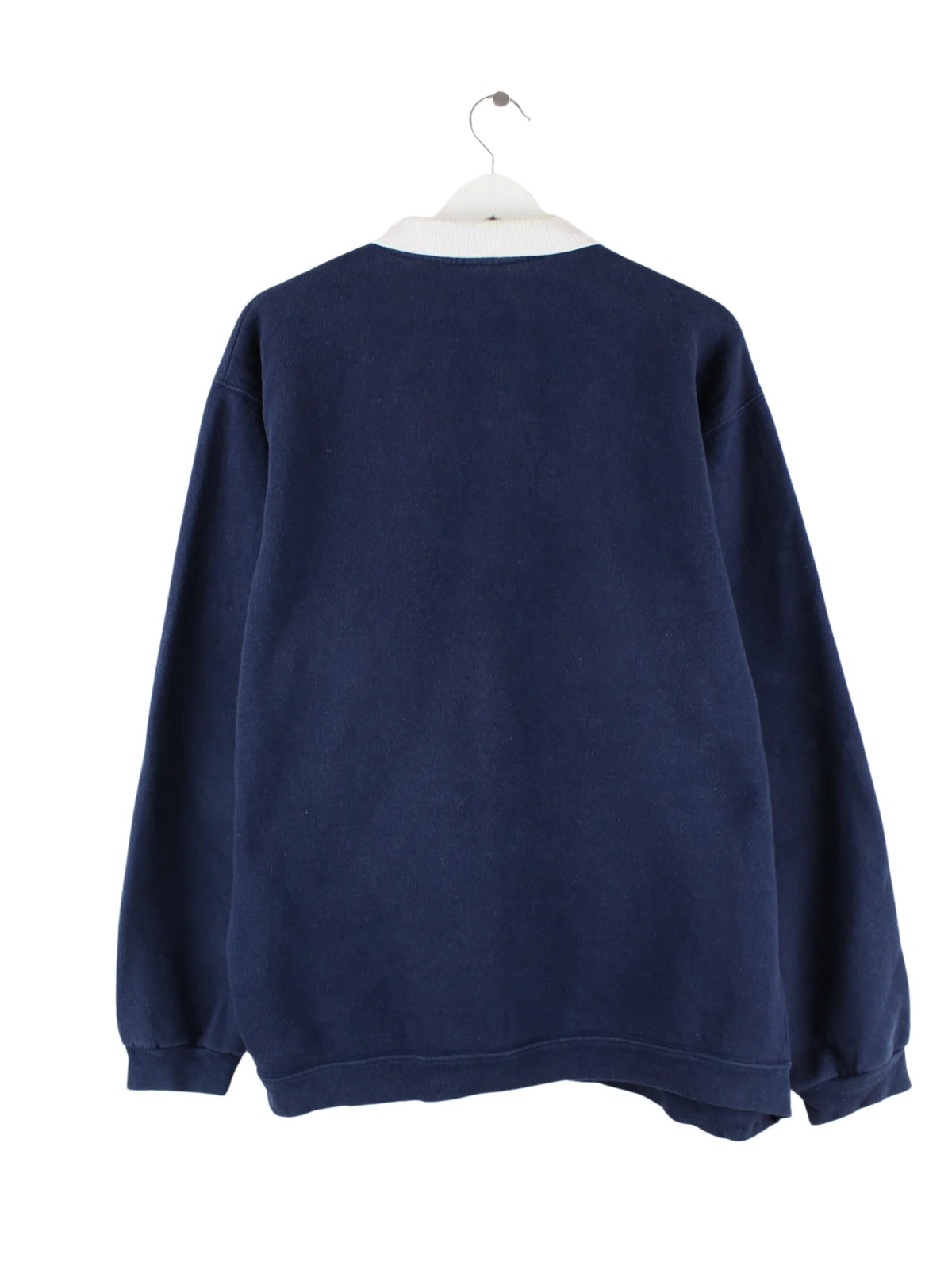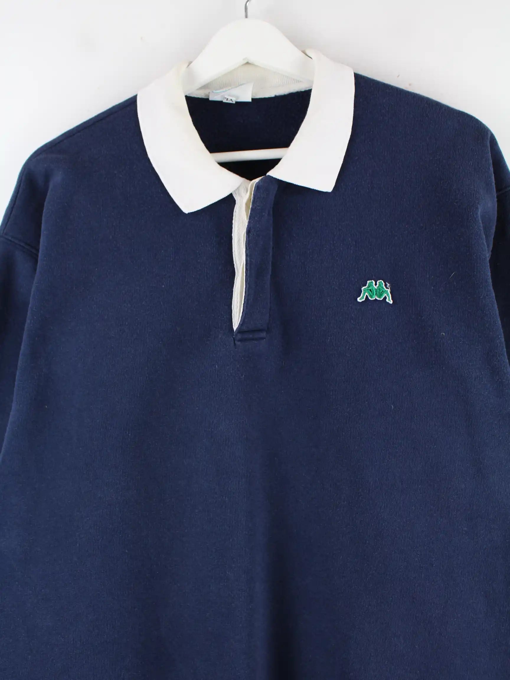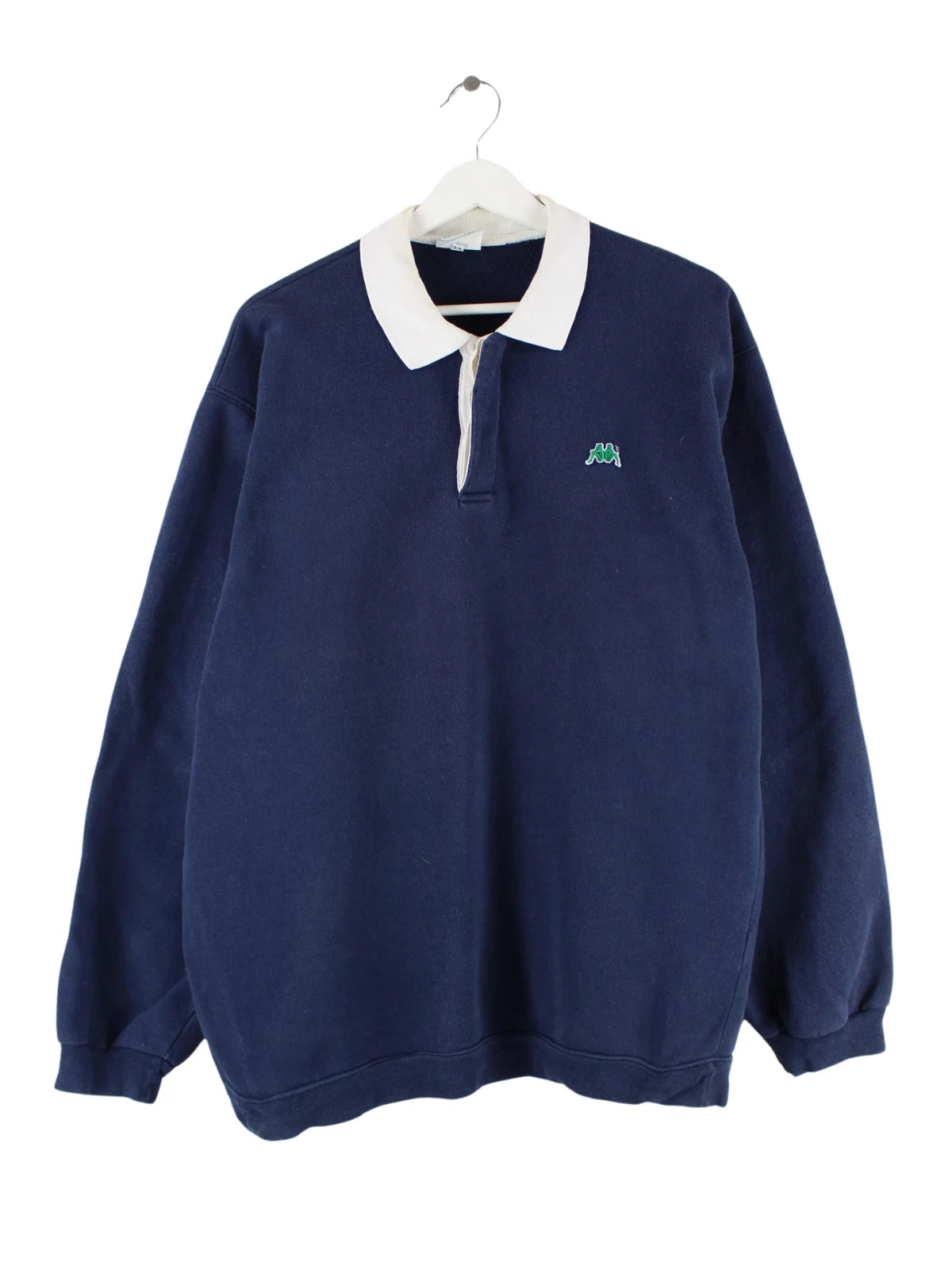 Sweater vom Label Kappa in Größe XL aus den 80'ern. Er ist aus einer Baumwollmischung produziert und in Blau im Angebot.