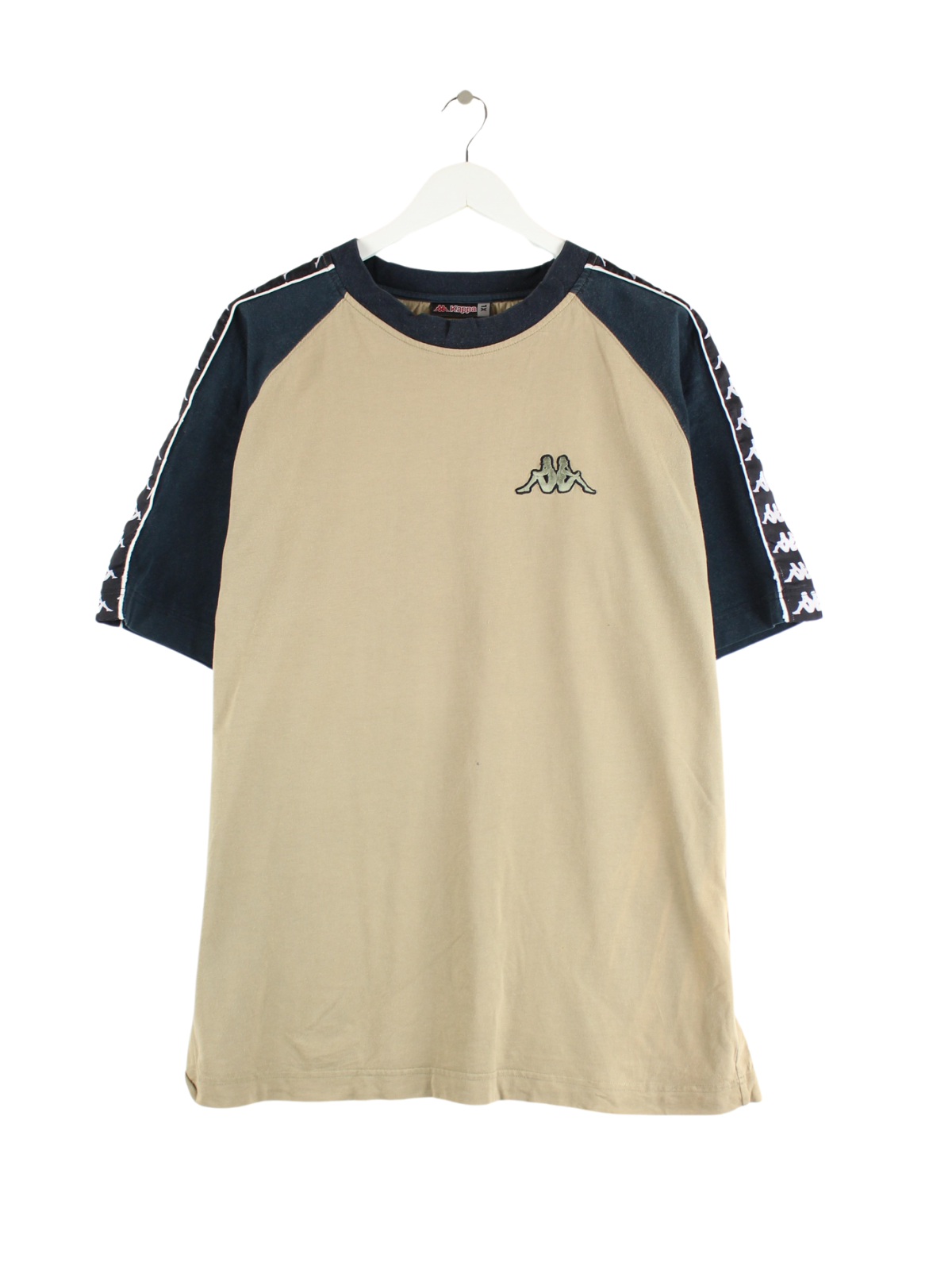 Beige T-shirt from the Kappa brand from the 90's in size XL. It is made of cotton. We would describe the condition as 'fine' (see pictures).