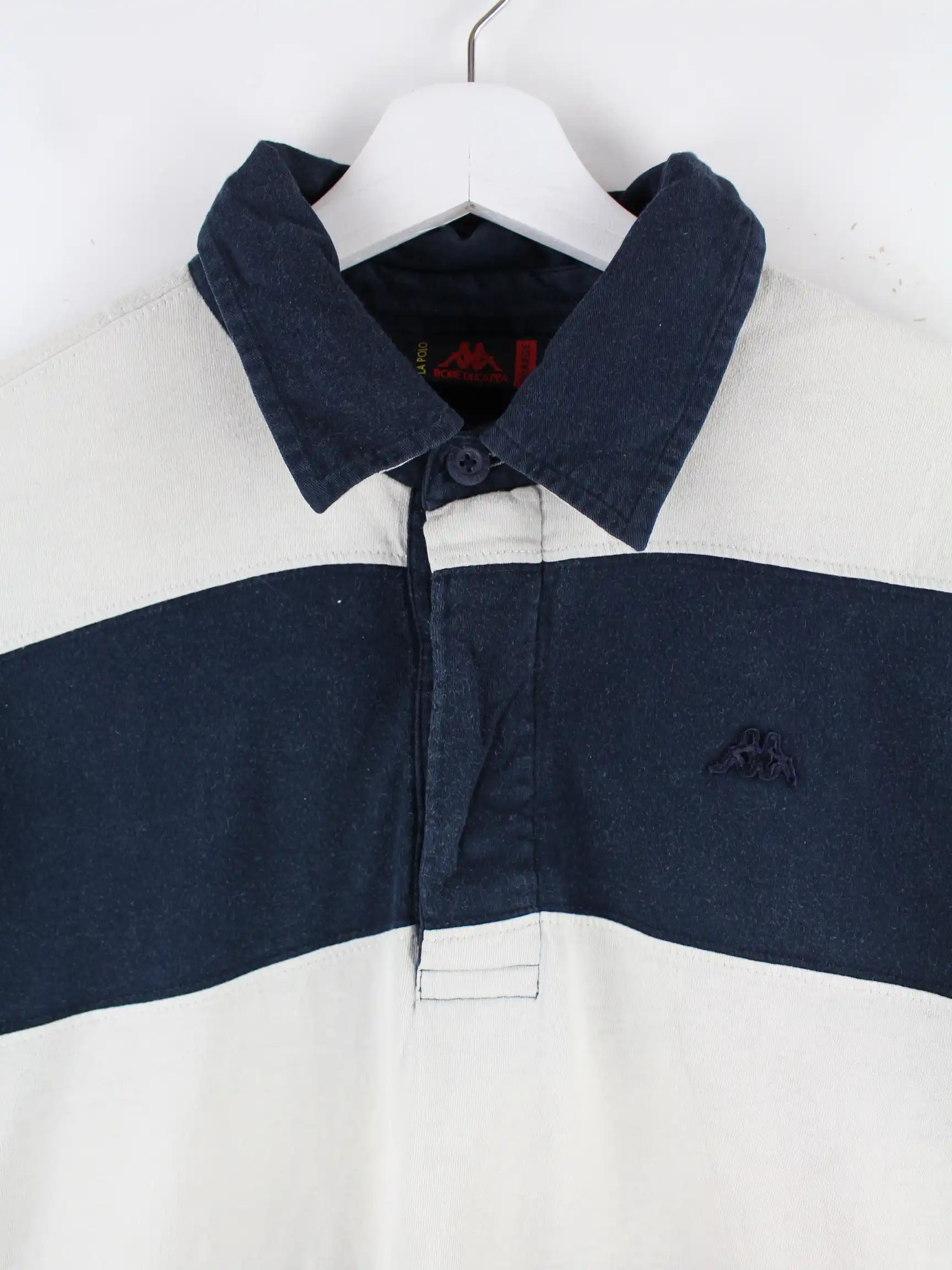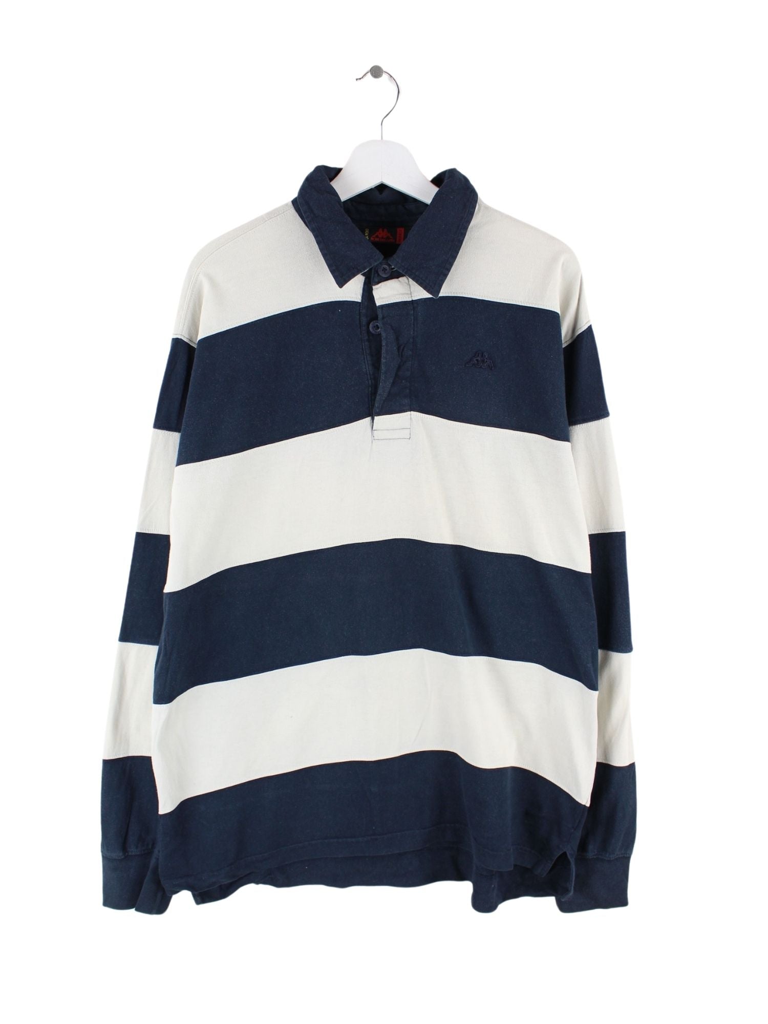 Poloshirt vom Label Kappa in Größe XXL. Es ist aus Baumwolle gefertigt und in Blau vorrätig.