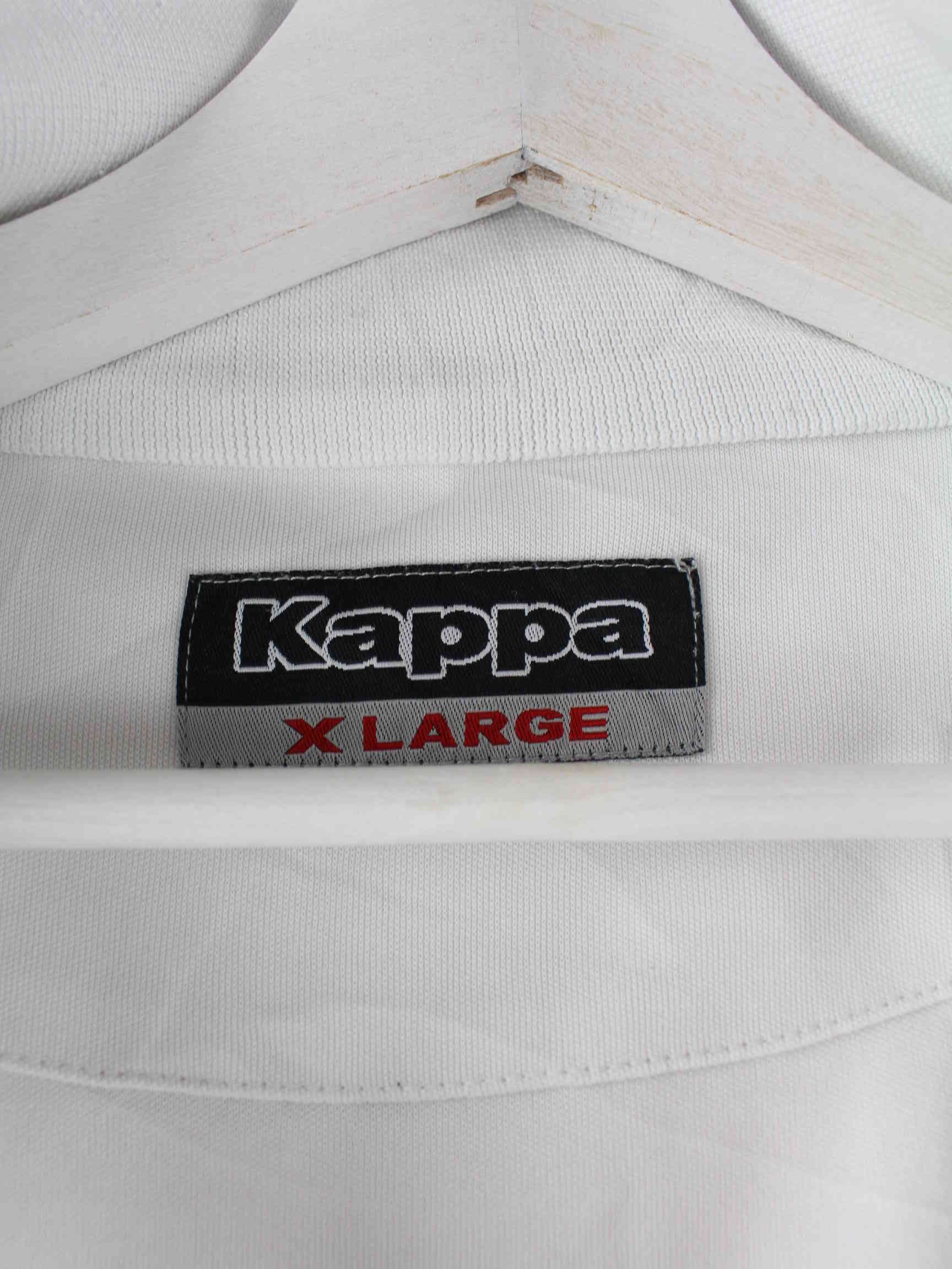 White training jacket with embroidery from the Kappa label from the early 2000s in size L. It is made of synthetic material and is available in good condition.