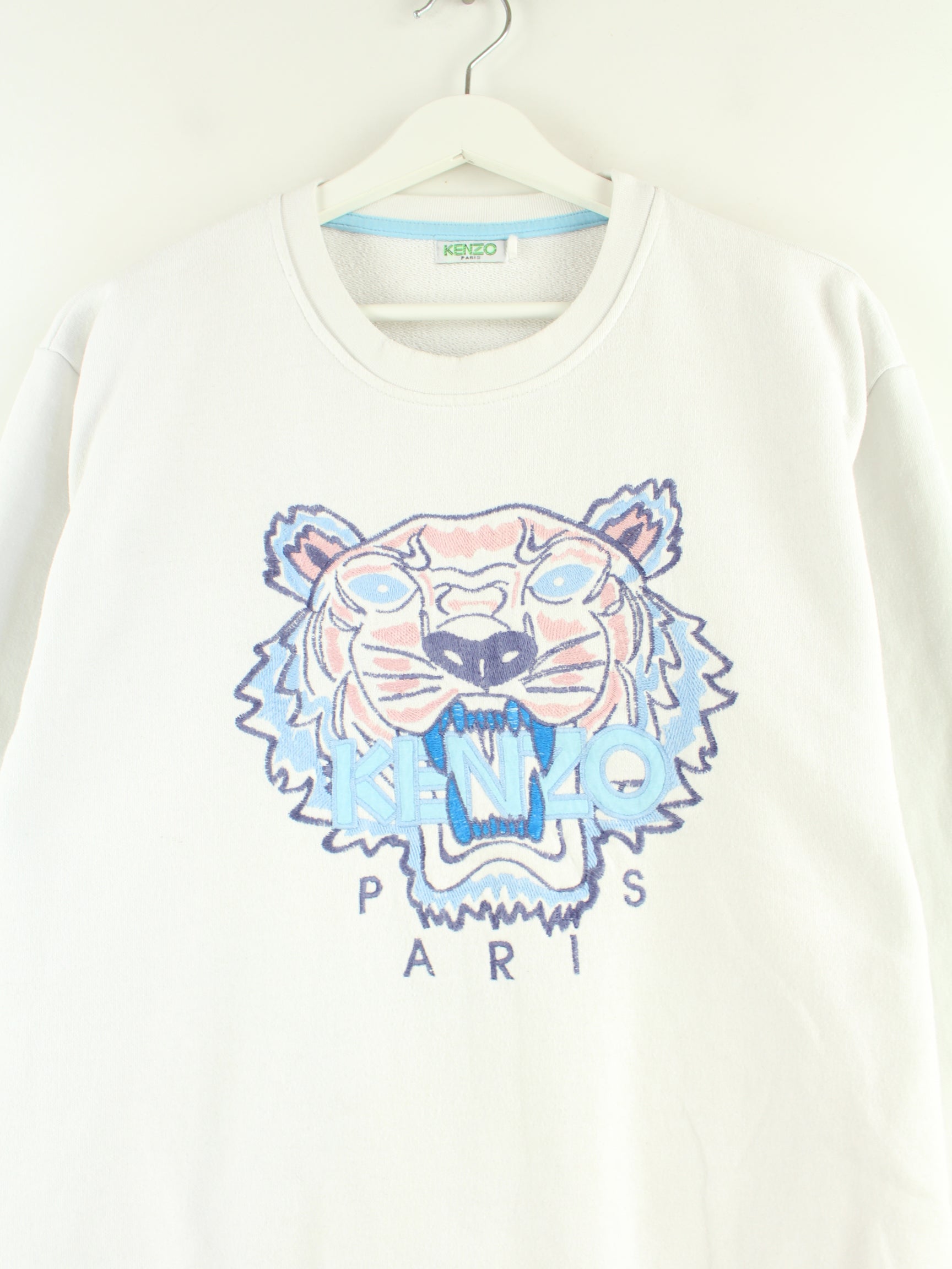 Sweater by the brand Kenzo with embroidered logo in size M from the 90's. It is made from a cotton blend and is in stock in white.