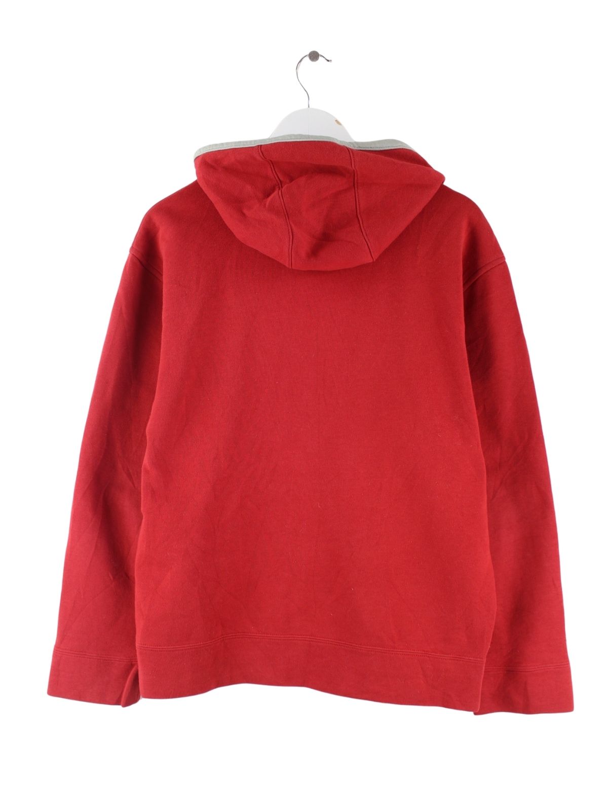 Roter Hoodie mit Stickereien und durchgehendem Reißverschluß vom Label Lacoste in Größe M. Er ist aus einer Baumwollmischung gemacht und in sehr gutem Zustand vorrätig.