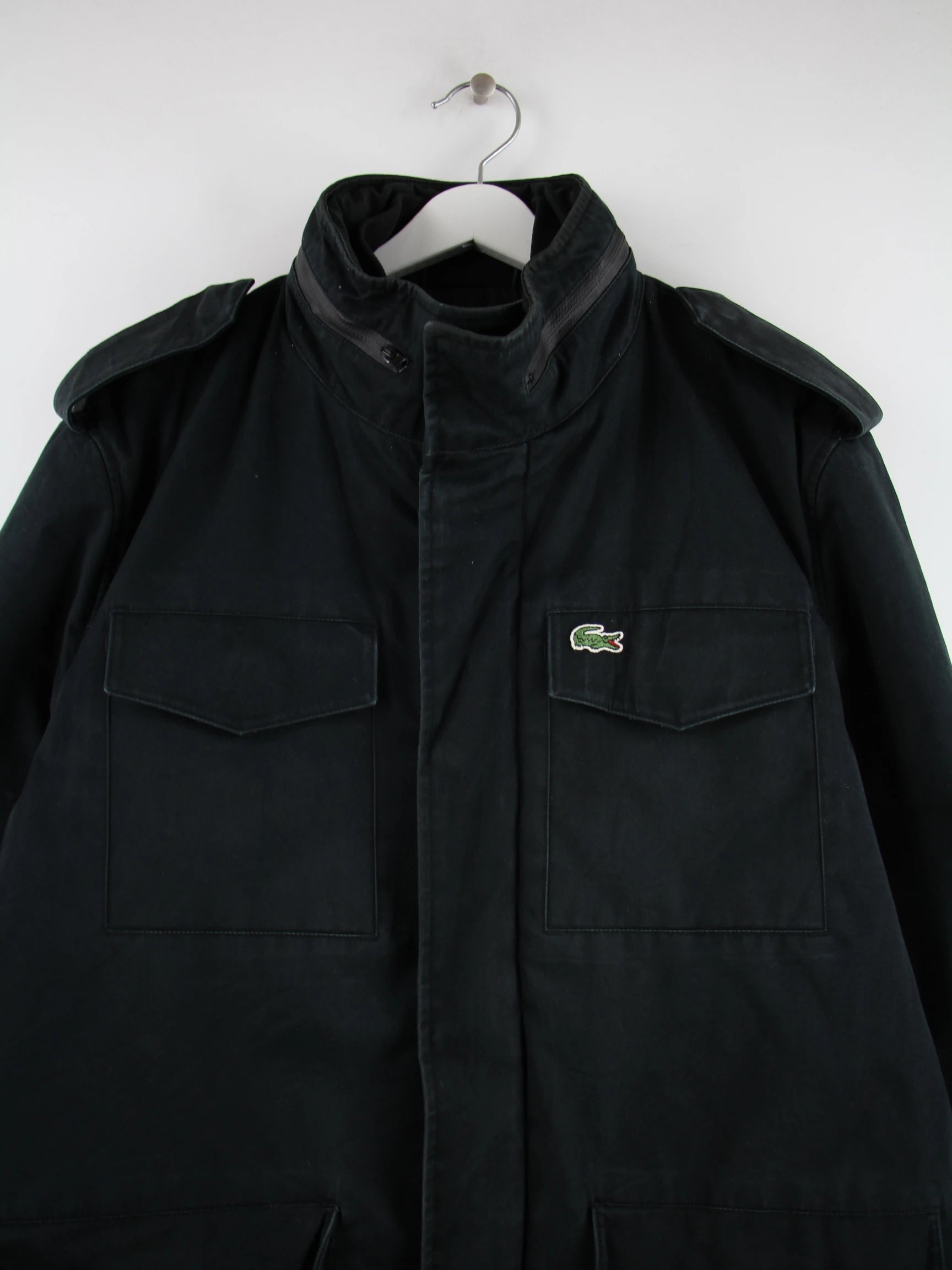 Jacke von Lacoste in Größe L. Sie ist aus Synthetik produziert und in Schwarz bei uns zu bekommen.
