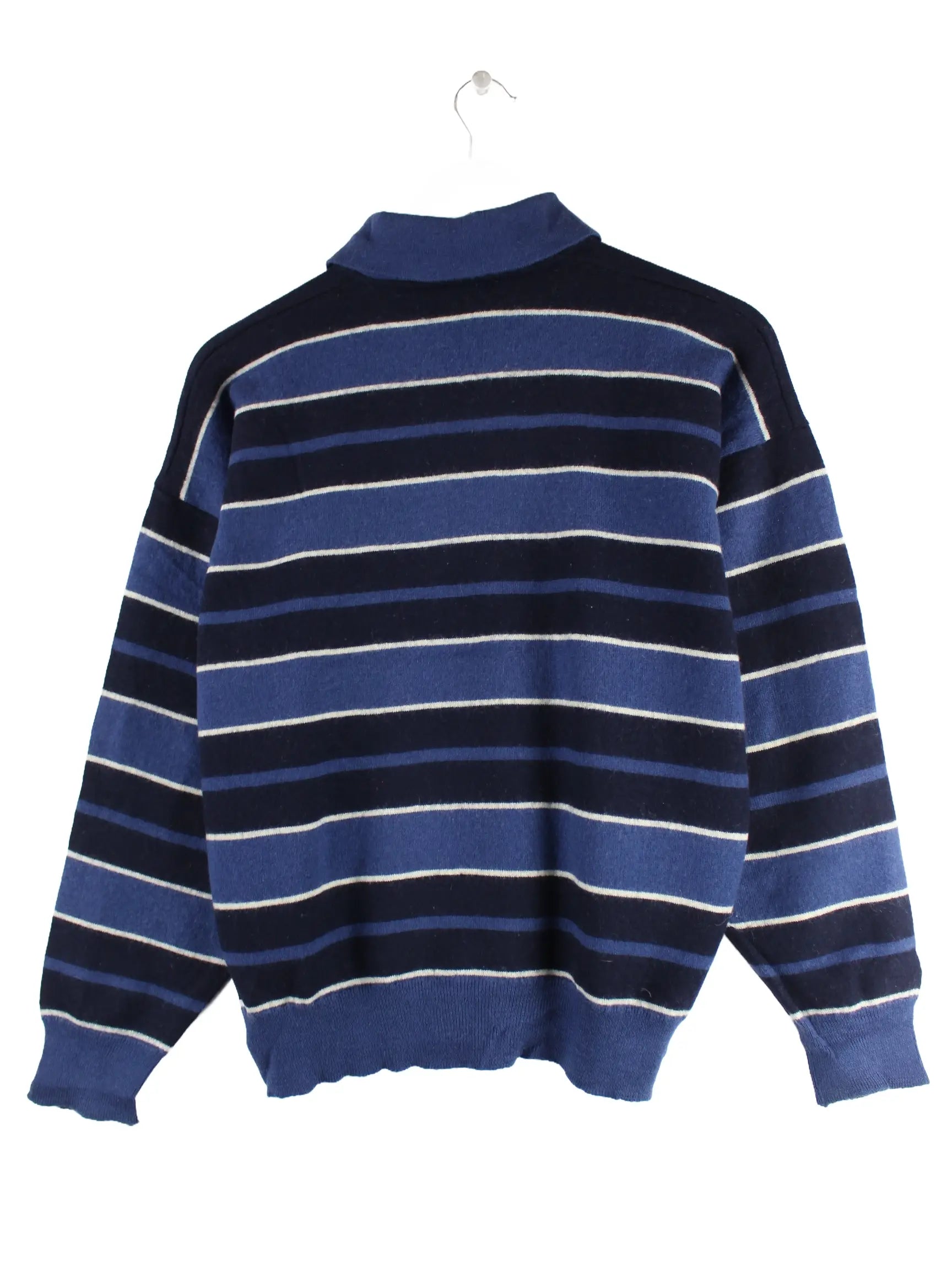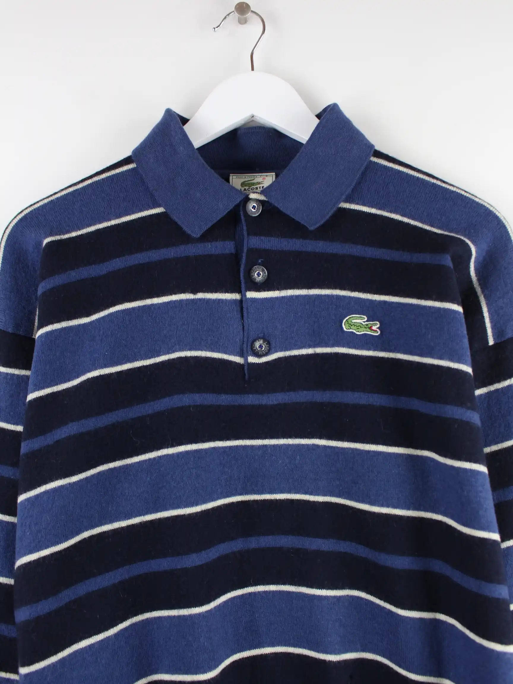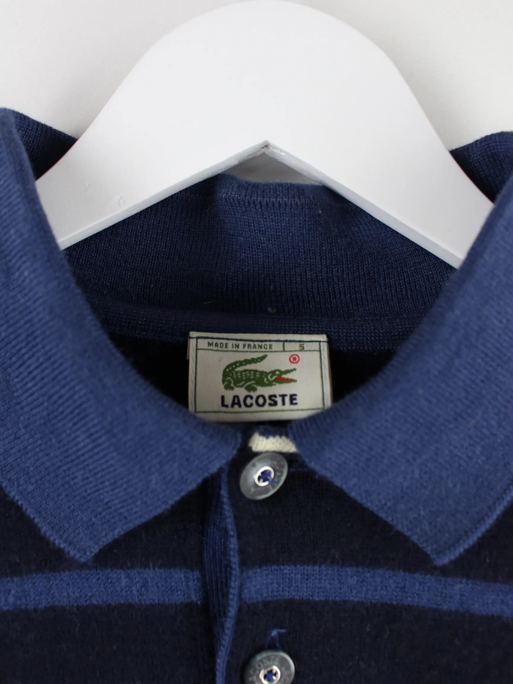Blauer Pullover der Marke Lacoste in Größe S. Er ist aus einer Wollmischung hergestellt. Den Zustand würden wir als 'In Ordnung' bezeichnen (vergl. Bilder).