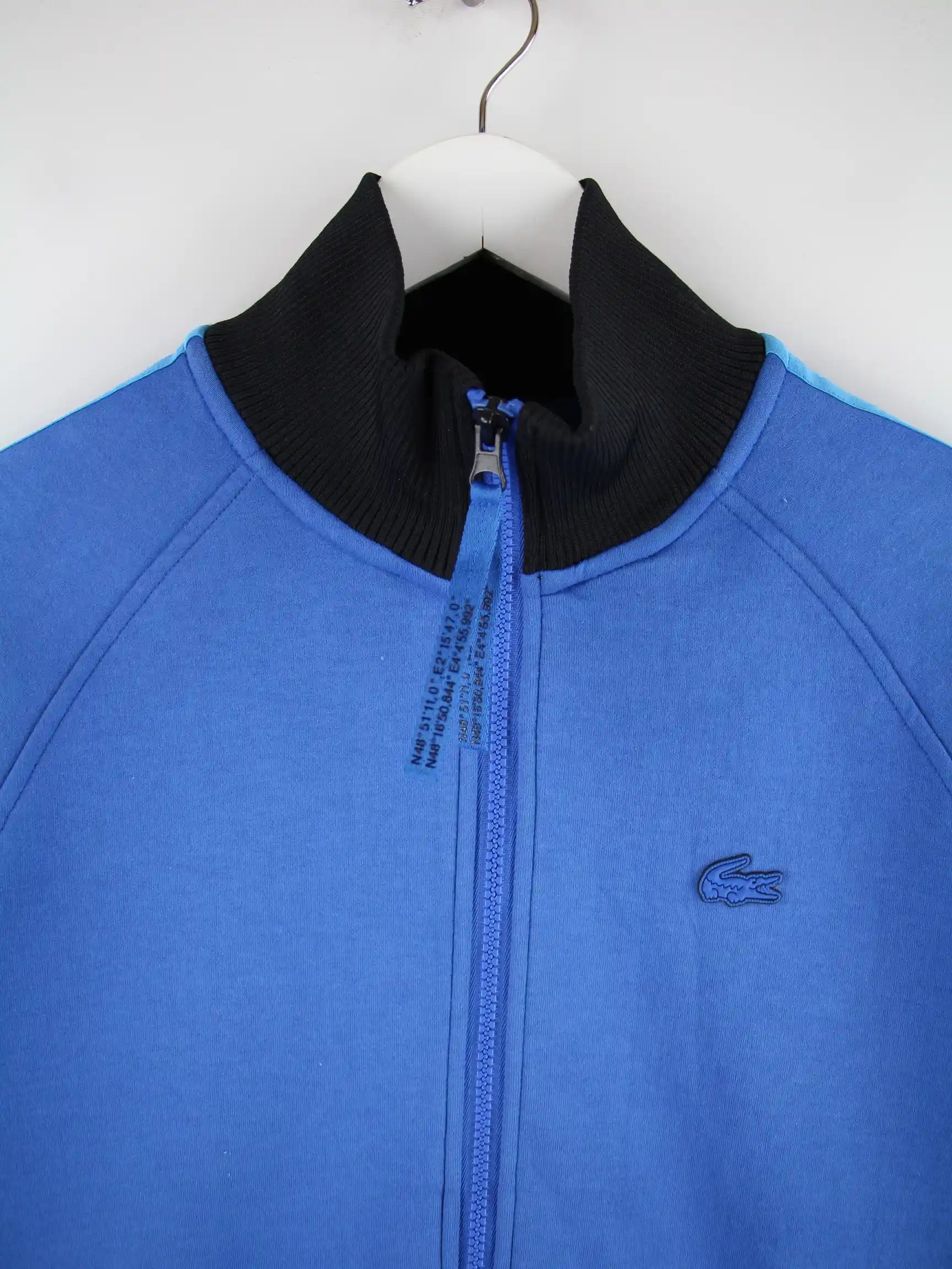 Trainingsjacke aus dem Hause Lacoste in Größe S. Sie ist aus Synthetik und in Blau lieferbar.