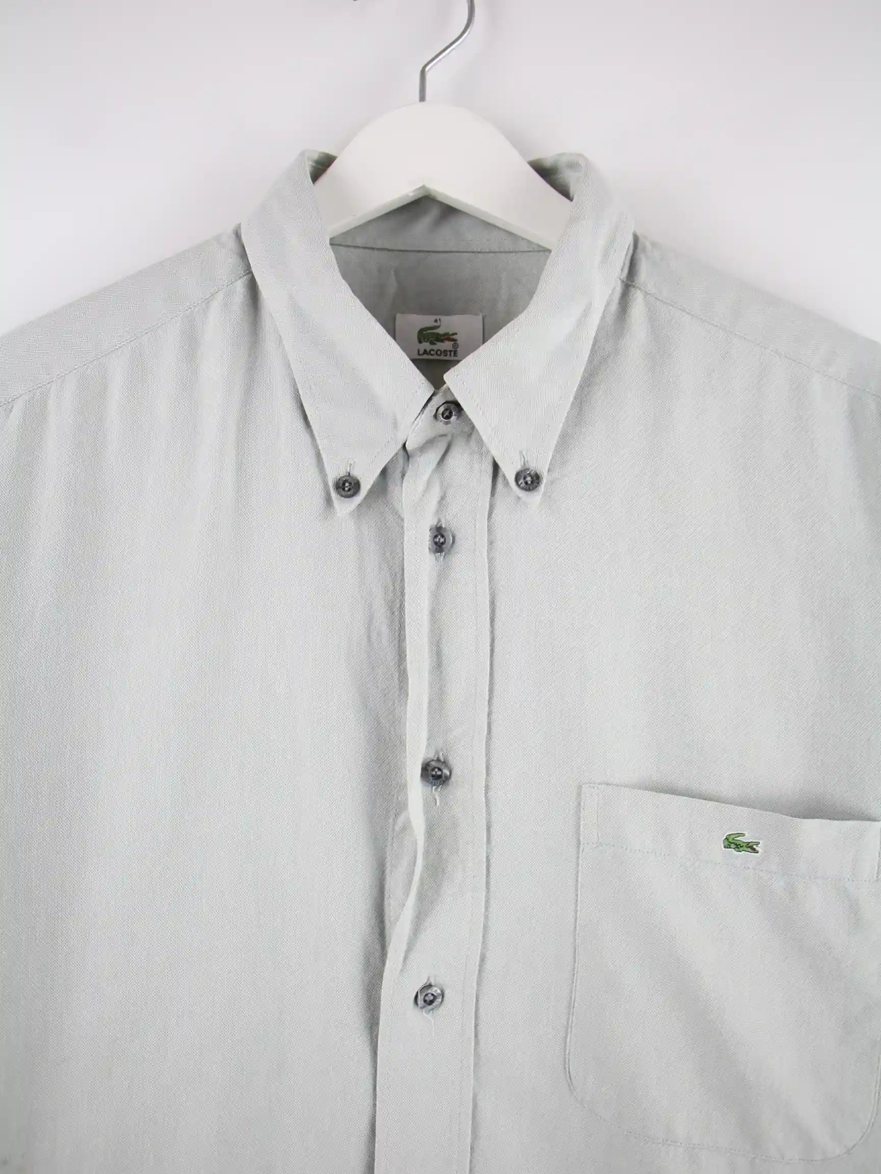 Graues Hemd aus dem Hause Lacoste in Größe L. Es ist aus Baumwolle und in gutem Zustand bei uns vorrätig.