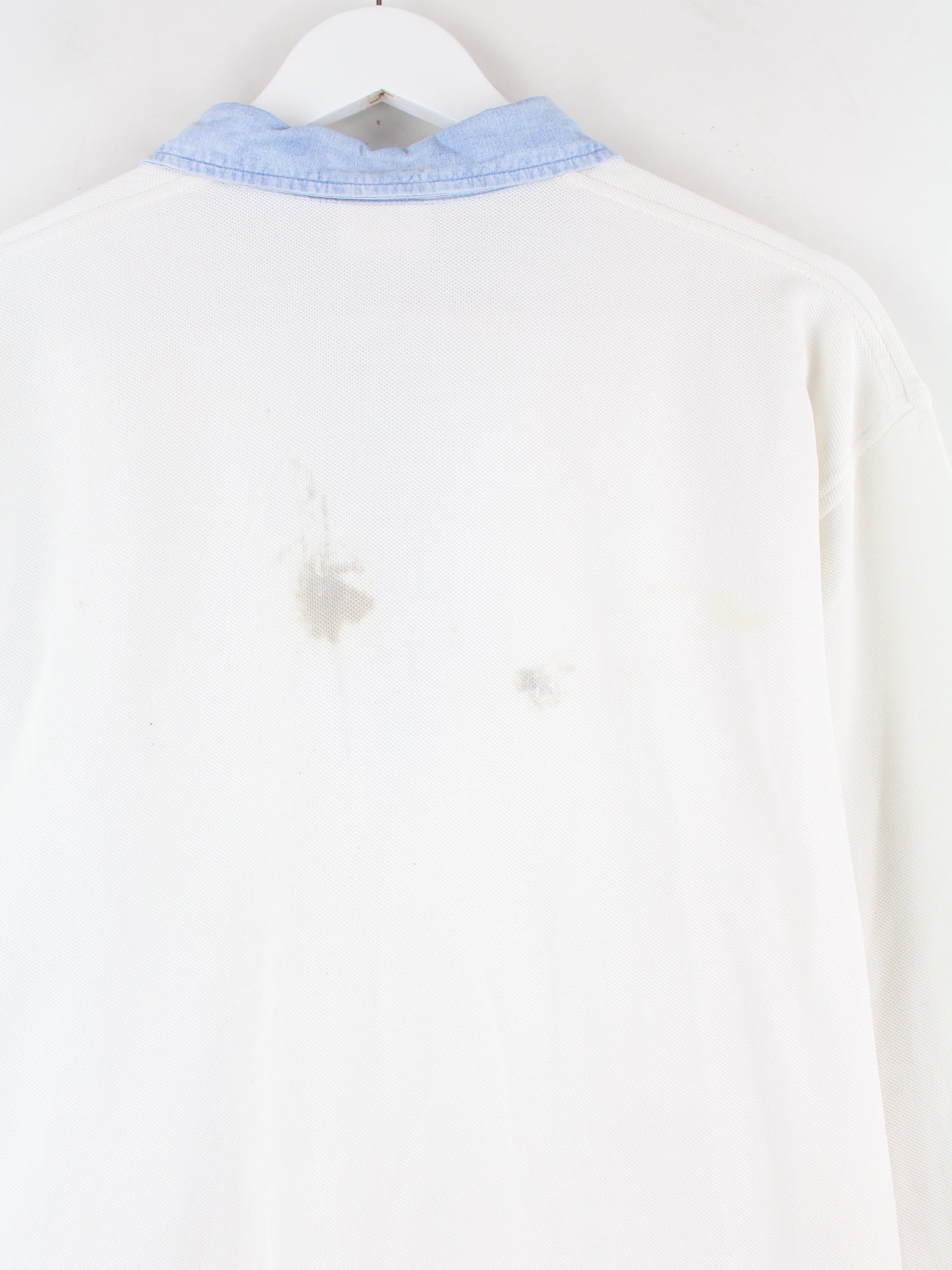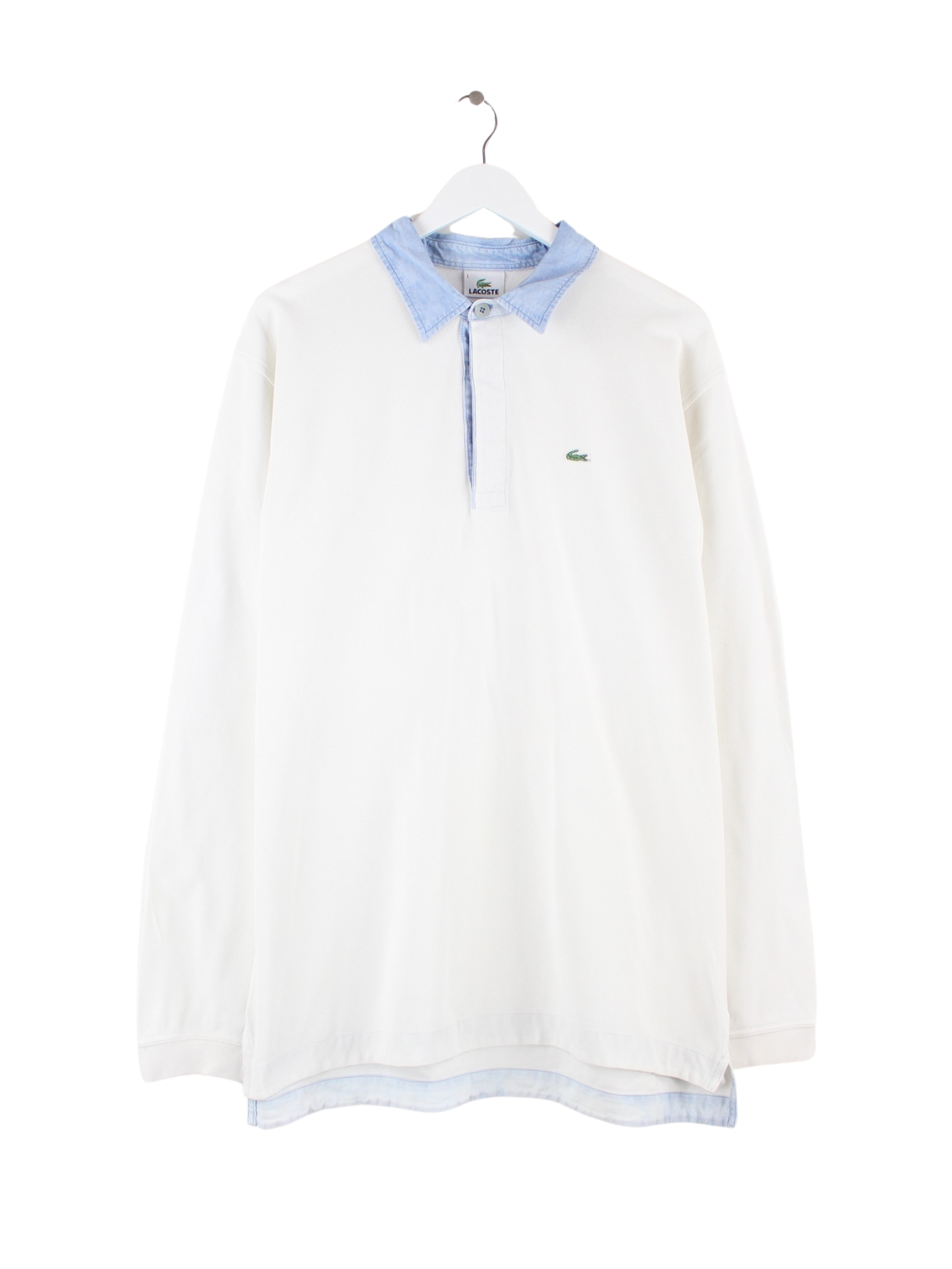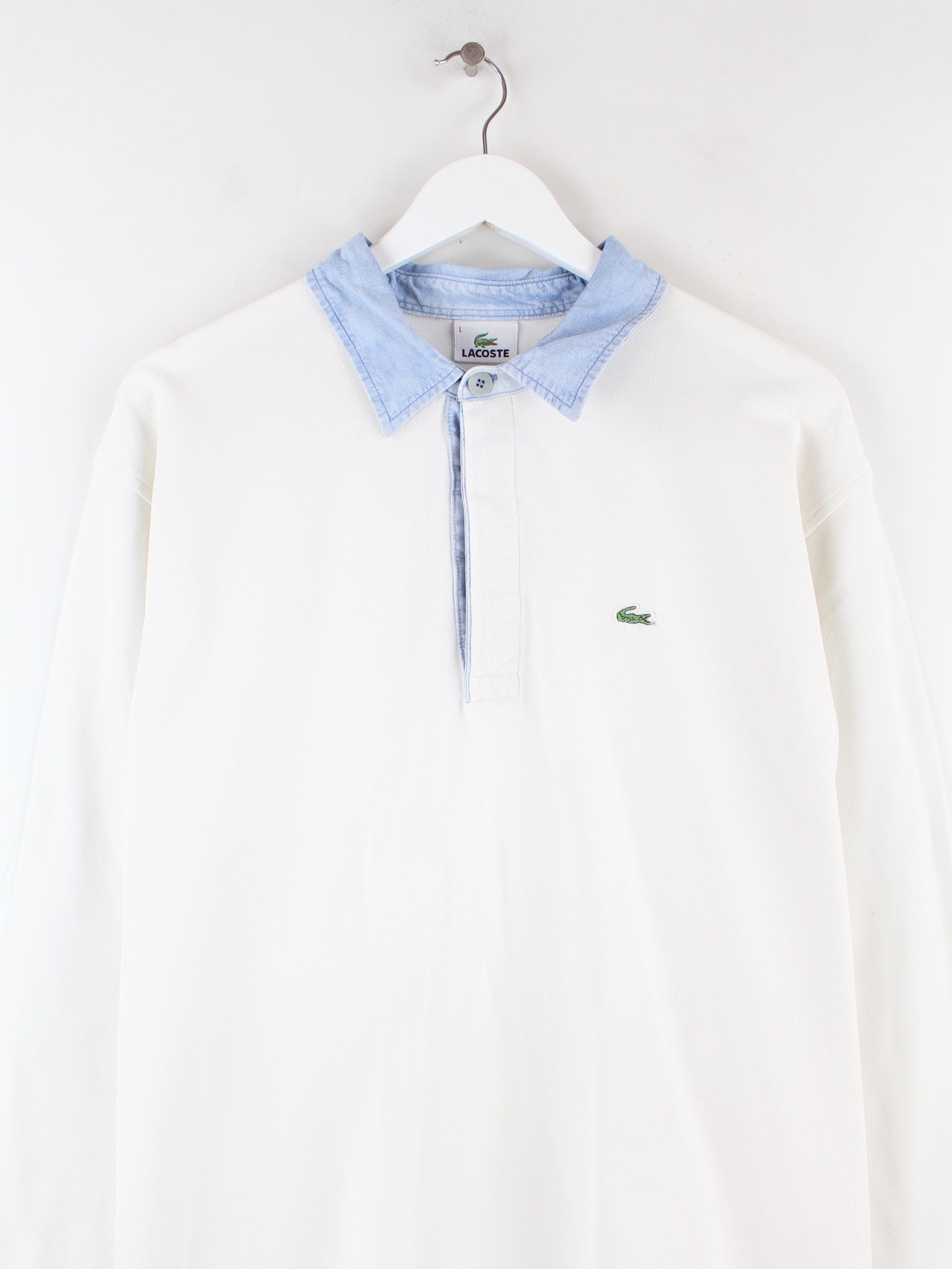 White polo shirt from Lacoste in size L. It is made of cotton. We would describe the condition as 'fine' (see pictures).