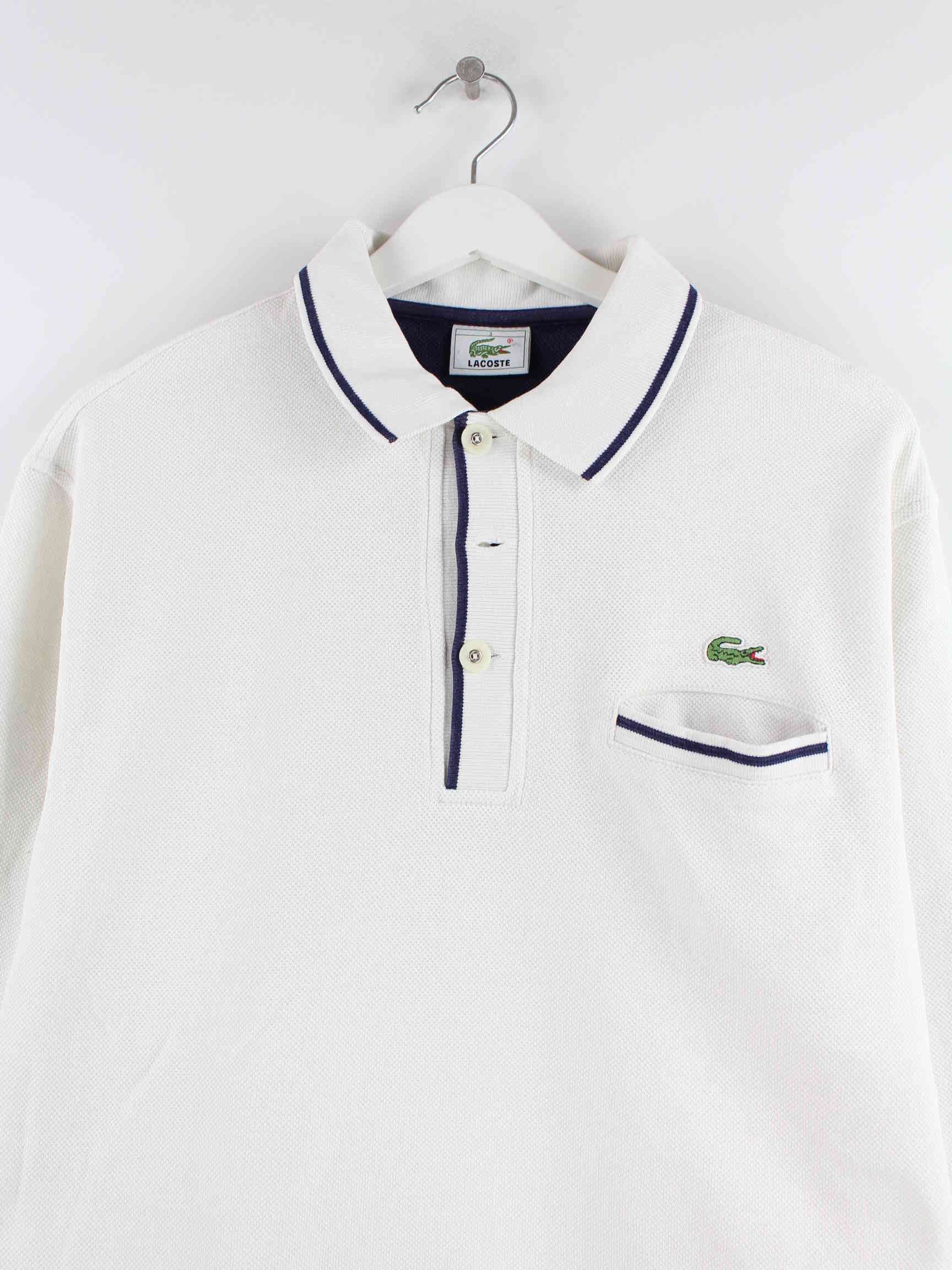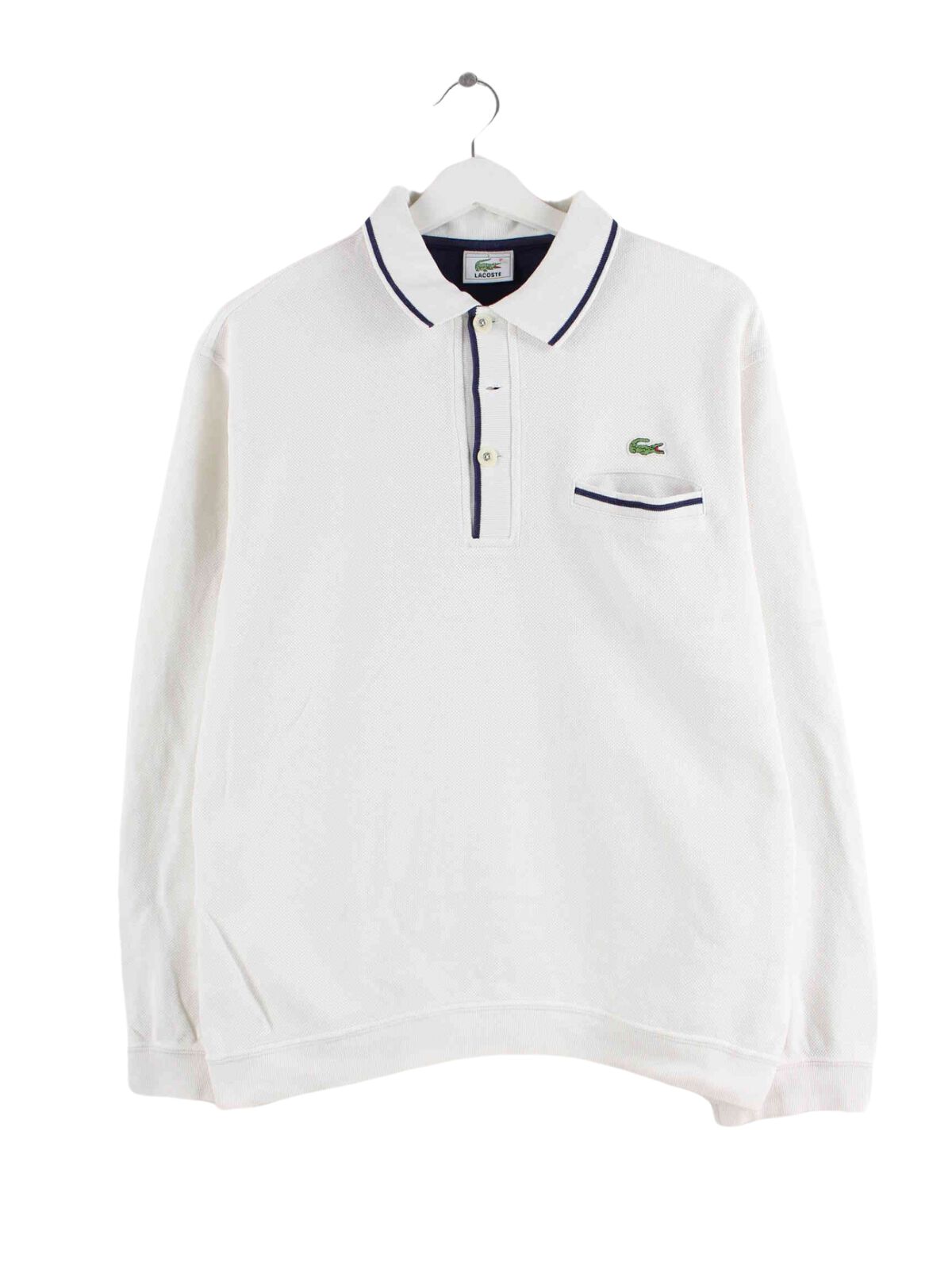 Sweater from the Lacoste label in size M. It is made from a cotton blend and is available in white.