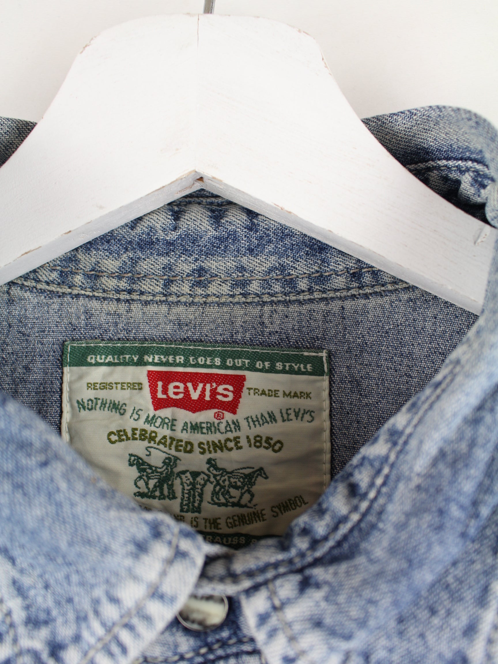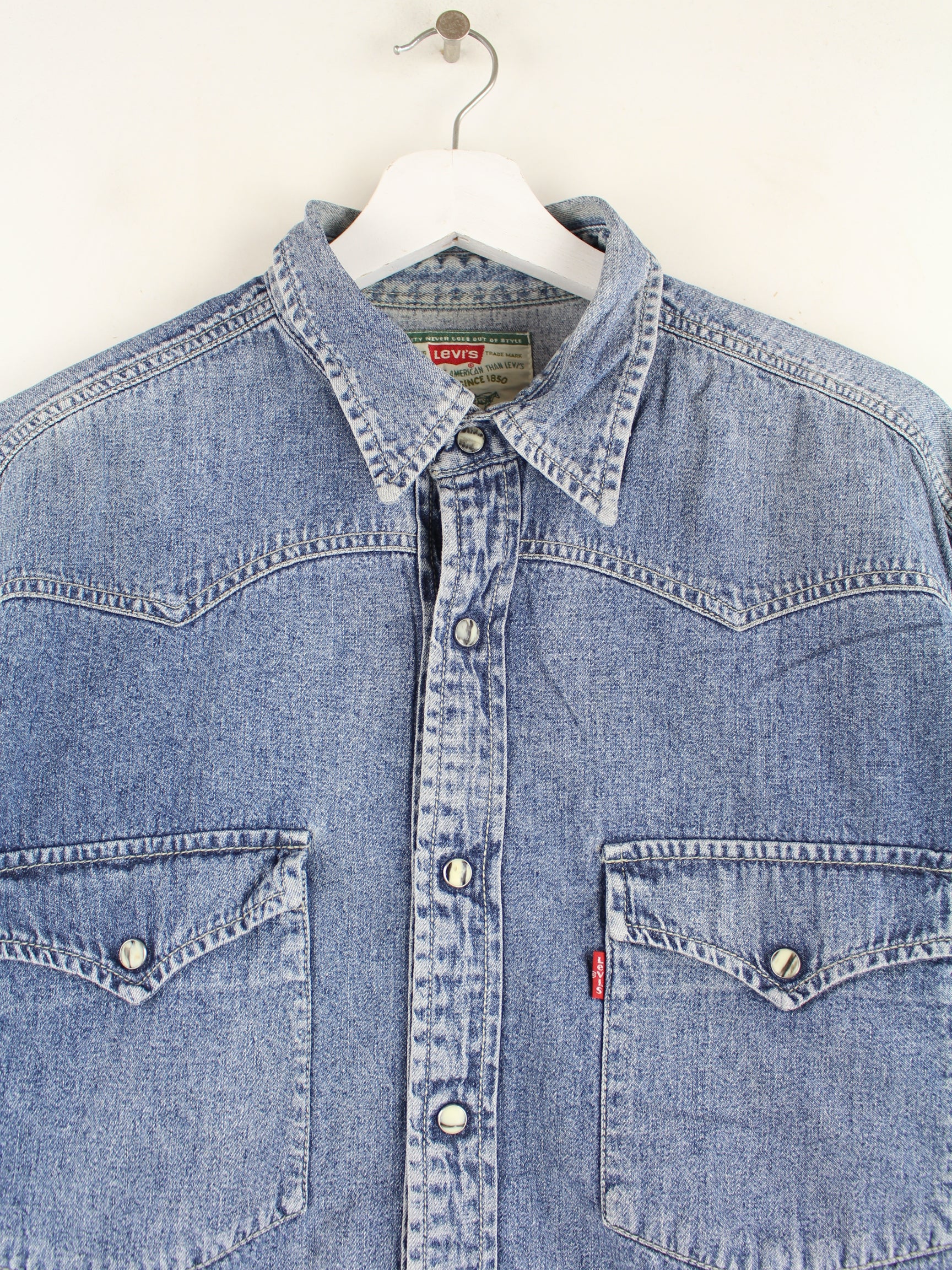 Casual shirt from the brand Levi's in size M from the 90's. It is made of cotton and available in blue.