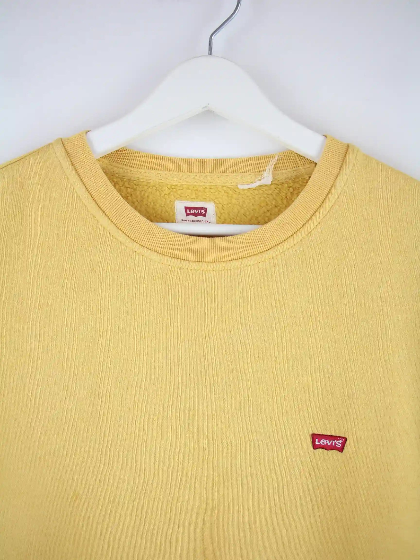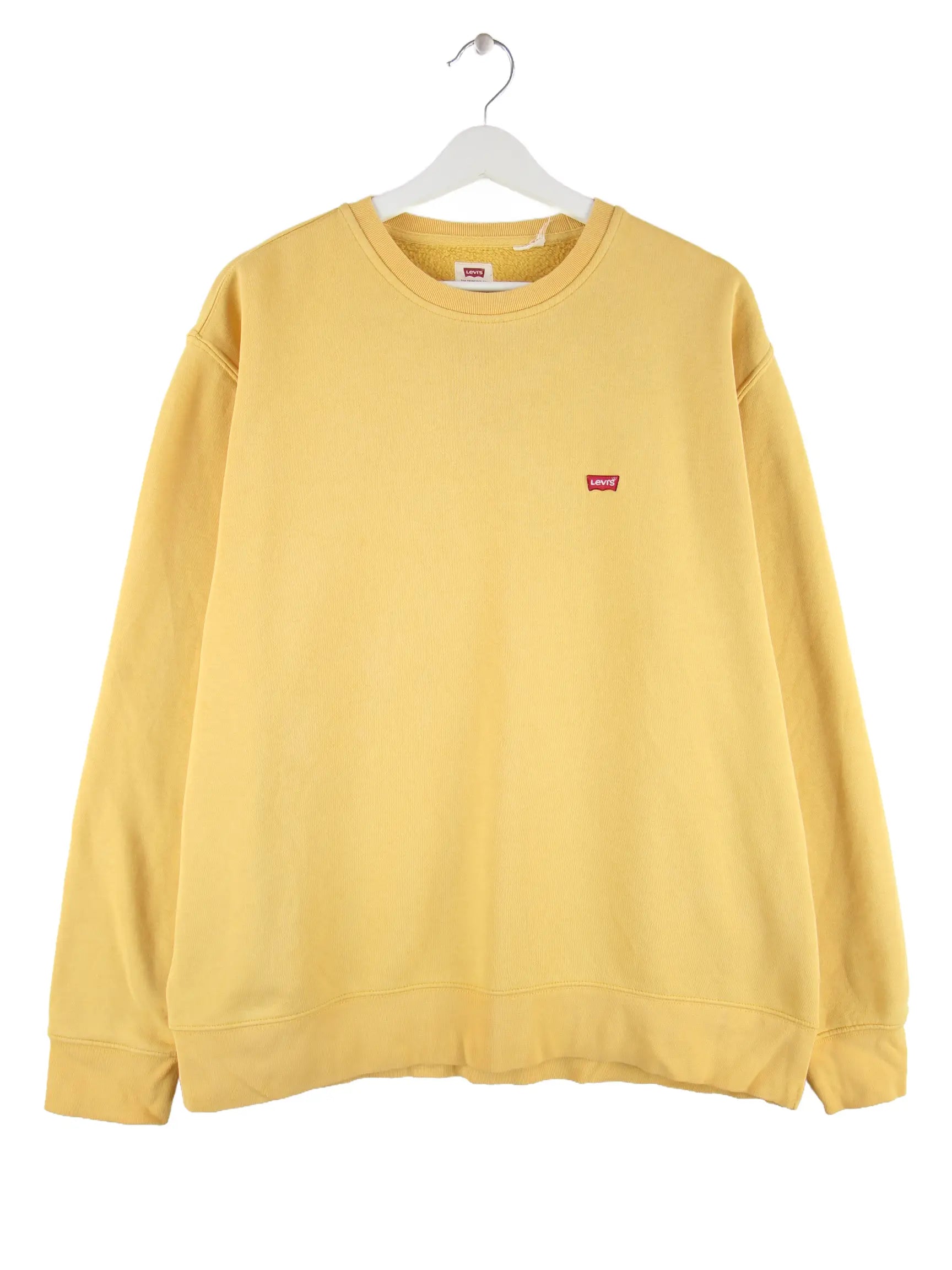 Gelber Sweater des Labels Levi's in Größe L. Er ist aus einer Baumwollmischung angefertigt und in gutem Zustand im Bestand.