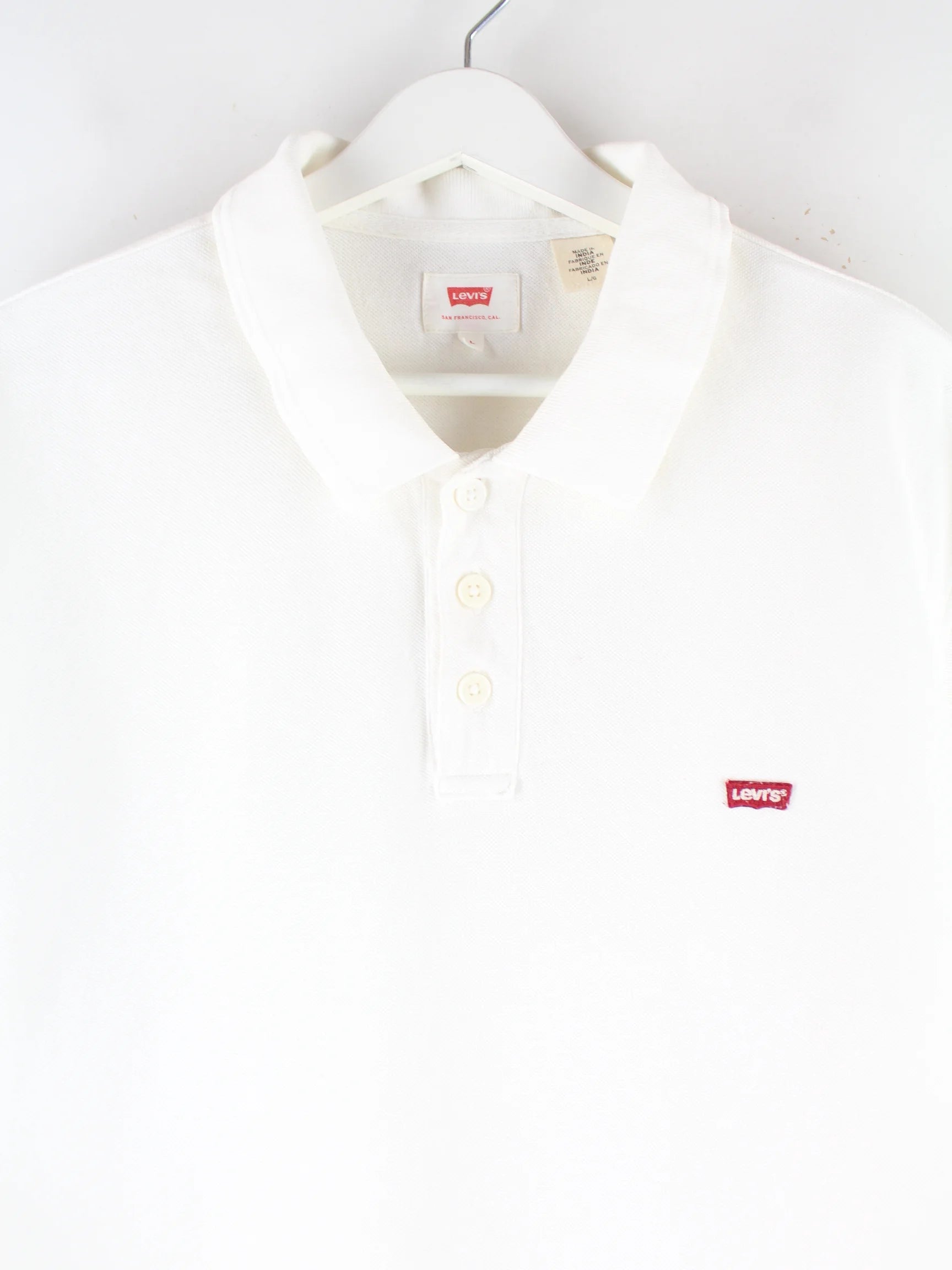 Weißes Poloshirt von Levi's in Größe L. Es ist aus Baumwolle gefertigt und in gutem Zustand in Stock.