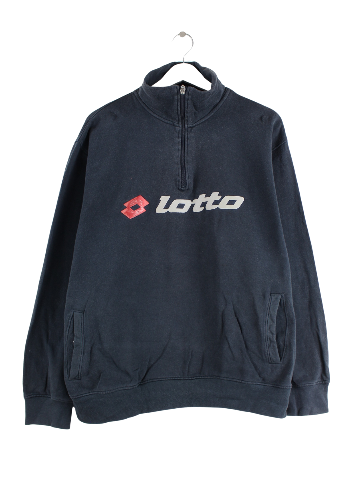 Sweater by Lotto with a short zip in size L. It is made of a cotton blend and is available in black. With a great logo print.