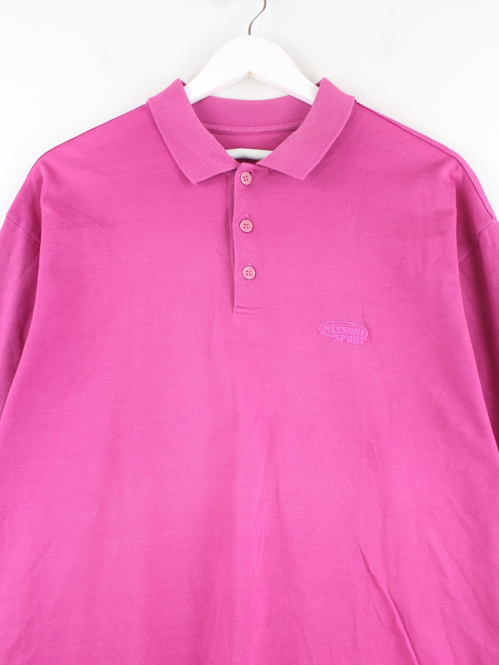 Pink polo shirt with embroidered motifs by Missoni from the 90's in size M. It is made of cotton and is in very good condition.