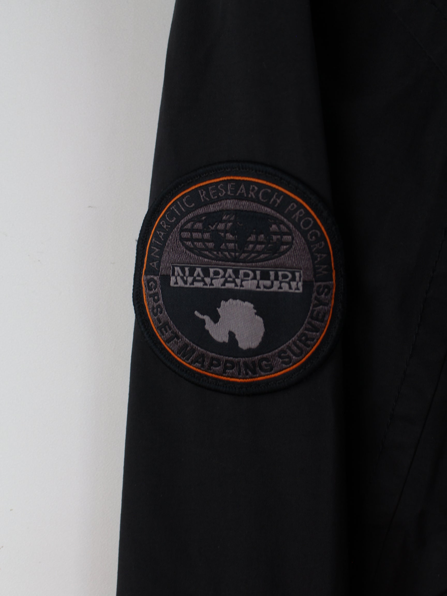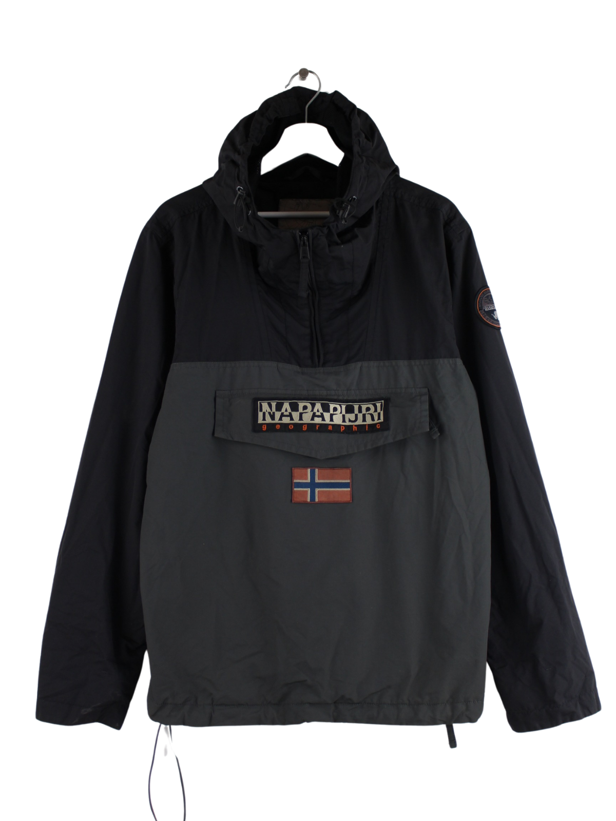 Windbreaker von Napapjiri mit gesticktem Logo in Größe L. Er ist aus Synthetik produziert und in Schwarz bei uns zu bekommen.