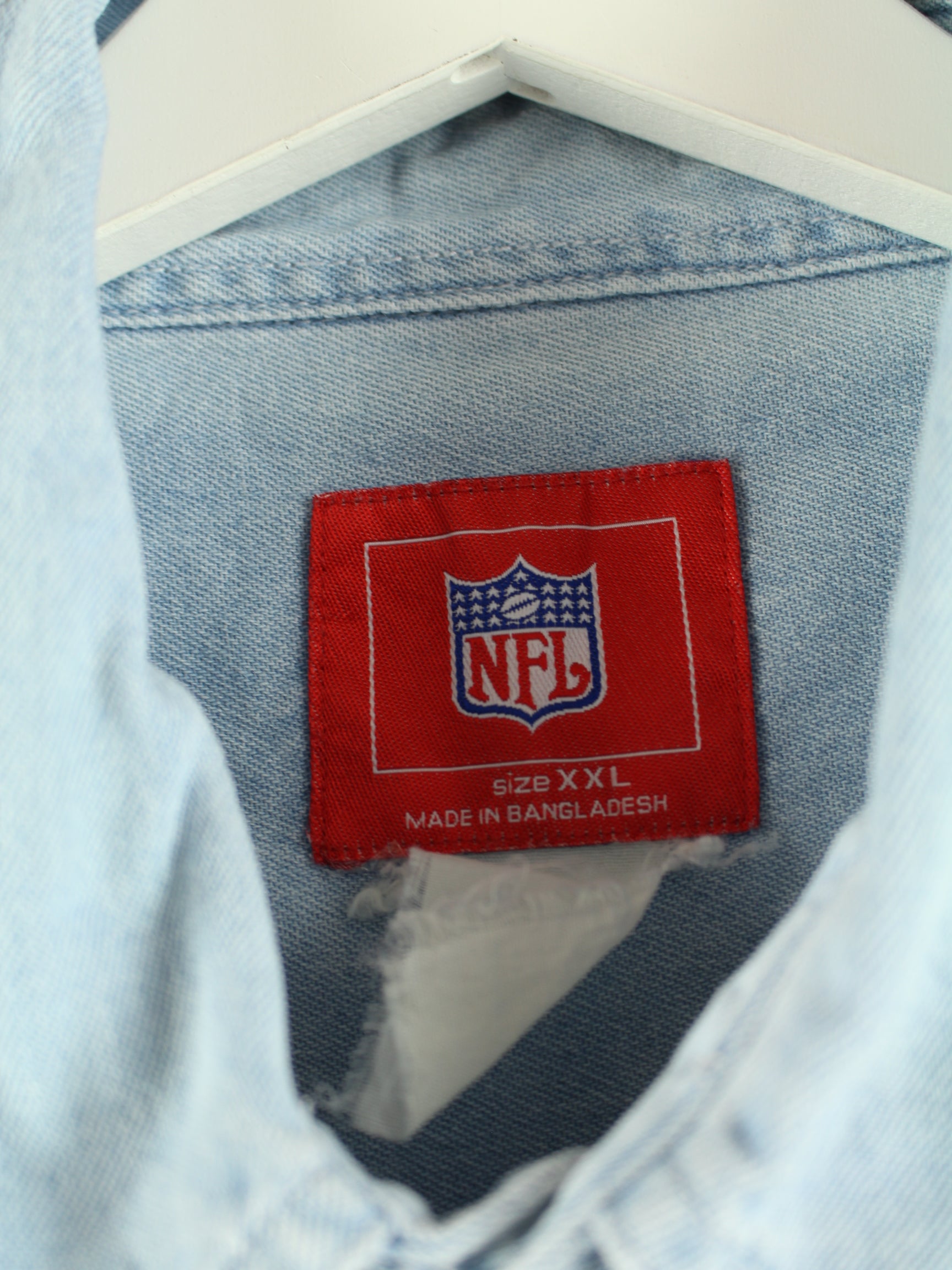 Blue casual shirt with embroidered NFL logo in size XXL. It is made of cotton and is available in good condition.