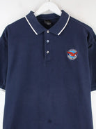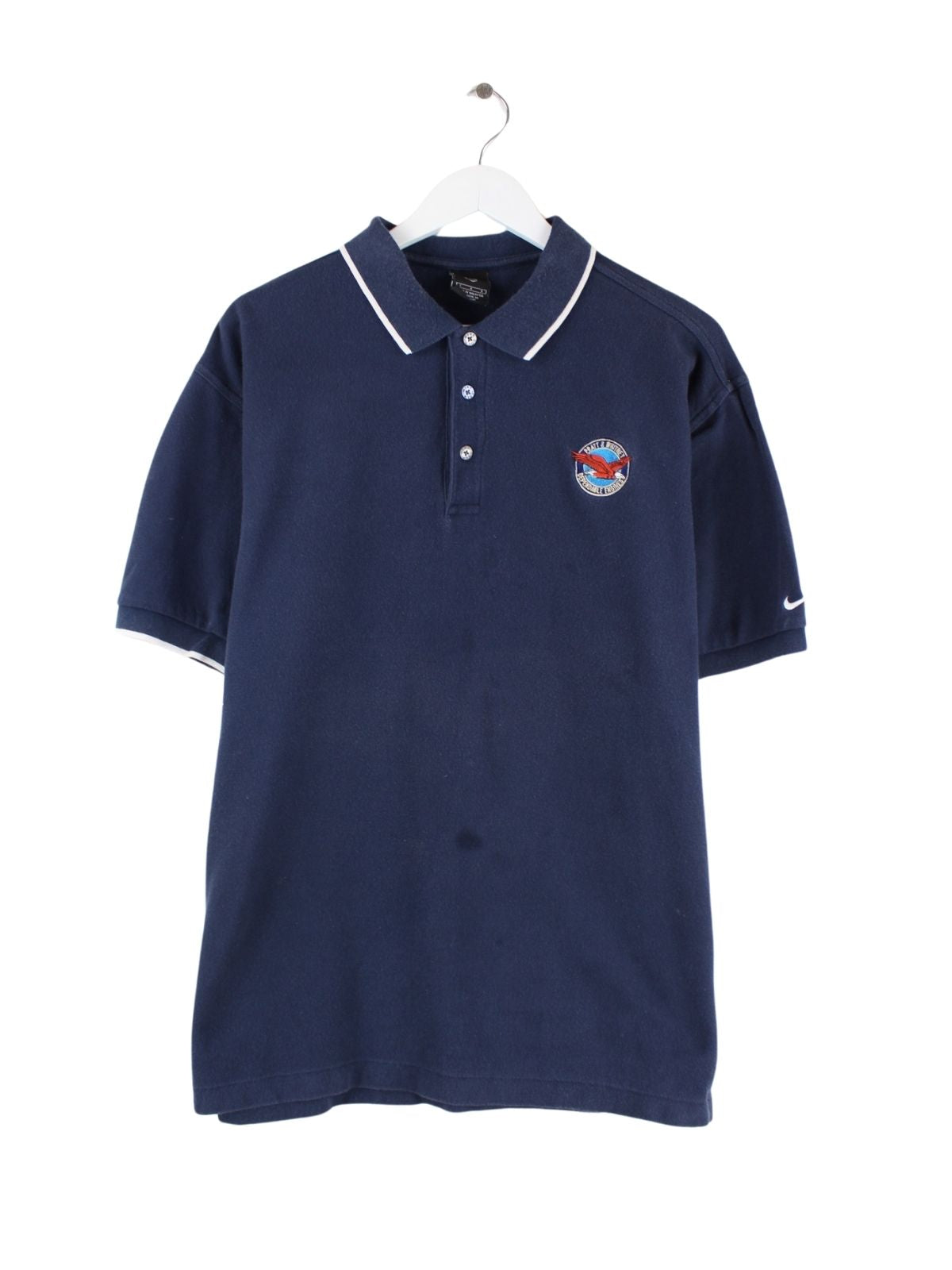Poloshirt von Nike mit Stickereien in Größe L. Es ist aus Baumwolle produziert und in Blau im Bestand.